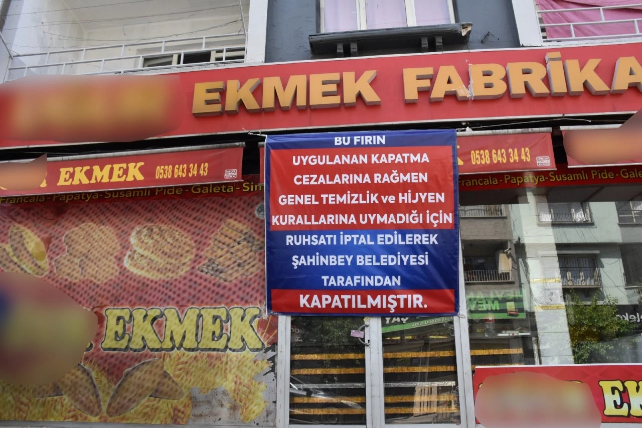 Şahinbey Belediyesi, halk sağlığını tehdit eden işletmelere karşı denetimlerini sürdürüyor. Zabıta Müdürlüğü ekipleri, ilçede faaliyet gösteren ve daha önce birçok kez hijyen ve temizlik kurallarına uymadığı için uyarılan bir fırının iş yeri ruhsatını iptal ederek işletmeyi süresiz olarak kapattı.