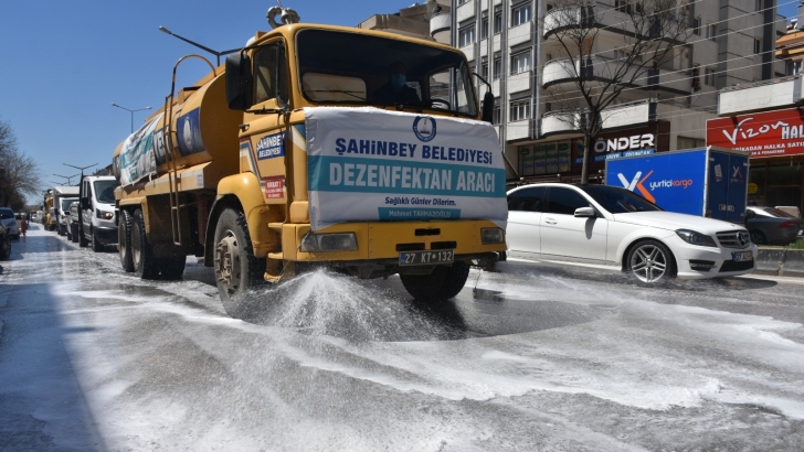 <p style="font-weight: 400;">Şahinbey Belediyesinde Korona virüs (Kovid19) salgınına karşı mücadele her yönüyle devam ediyor. Şahinbey Belediyesi 7 gün 24 saat çalışmalarını sürdürürken zabıta ekipleri anonslarla ‘Evde Kal’ çağrısında bulundu. Temizlik İşleri Müdürlüğü ekipleri, ortak kullanım alanlarının yoğun olduğu bölgelerde dezenfekte işlemini düzenli olarak yerine getirirken, ilçenin Karataş bölgesini, Ordu Caddesini, İnönü Caddesini, Özdemirbey caddesini, Akkent Mahallesi, ve Mavikent mahallesindeki ana caddeleri ve kaldırımları yıkayarak ilaçladı. Yapılan temizlik çalışmasında 12 tanker, 4 holder, 1 tanker arkası ilaçlama , 12 dezenfekte, 8 adet süpürge aracı, 22 sırt pompası, 12 adet pikap ve açık kasa transit kullanılırken, 40 ilaçlama 40 yol yıkama personeli görev yaptı.</p>