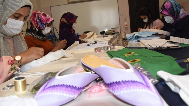 <p style="font-weight: 400; text-align: justify;"><strong>Şahinbey Belediyesi’ne bağlı Binevler Sosyal Tesisi’nin el nakışı sim sırma sipariş atölyesinde eğitim gören kadın kursiyerler, kutnu kumaşı üzerine işledikleri nakışlarla yaptıkları terlikleri destek veren firma ile birlikte dünyaya ihraç etmeyi hedefliyor. </strong></p>