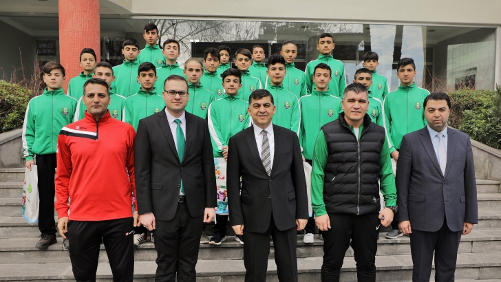 <p>Yeşil sahada birbirinden keyifli müsabakalara sahne olan U14 Kategorisi Futbol Ligi’ni namağlup il şampiyonu olarak tamamlayan ve Türkiye Futbol Federasyonu Türkiye Şampiyonası 1. etap müsabakalarına katılmaya hak kazanan Şehitkamil Belediye Spor Kulübünün genç futbolcuları, Şehitkamil Belediye Başkanı Rıdvan Fadıloğlu’nu makamında ziyaret ederek, futbol akademisi ve kulüp çalışmalarında kendilerine gösterilen yakın ilgi ve verilen büyük desteklerden dolayı teşekkürlerini dile getirdiler.</p>