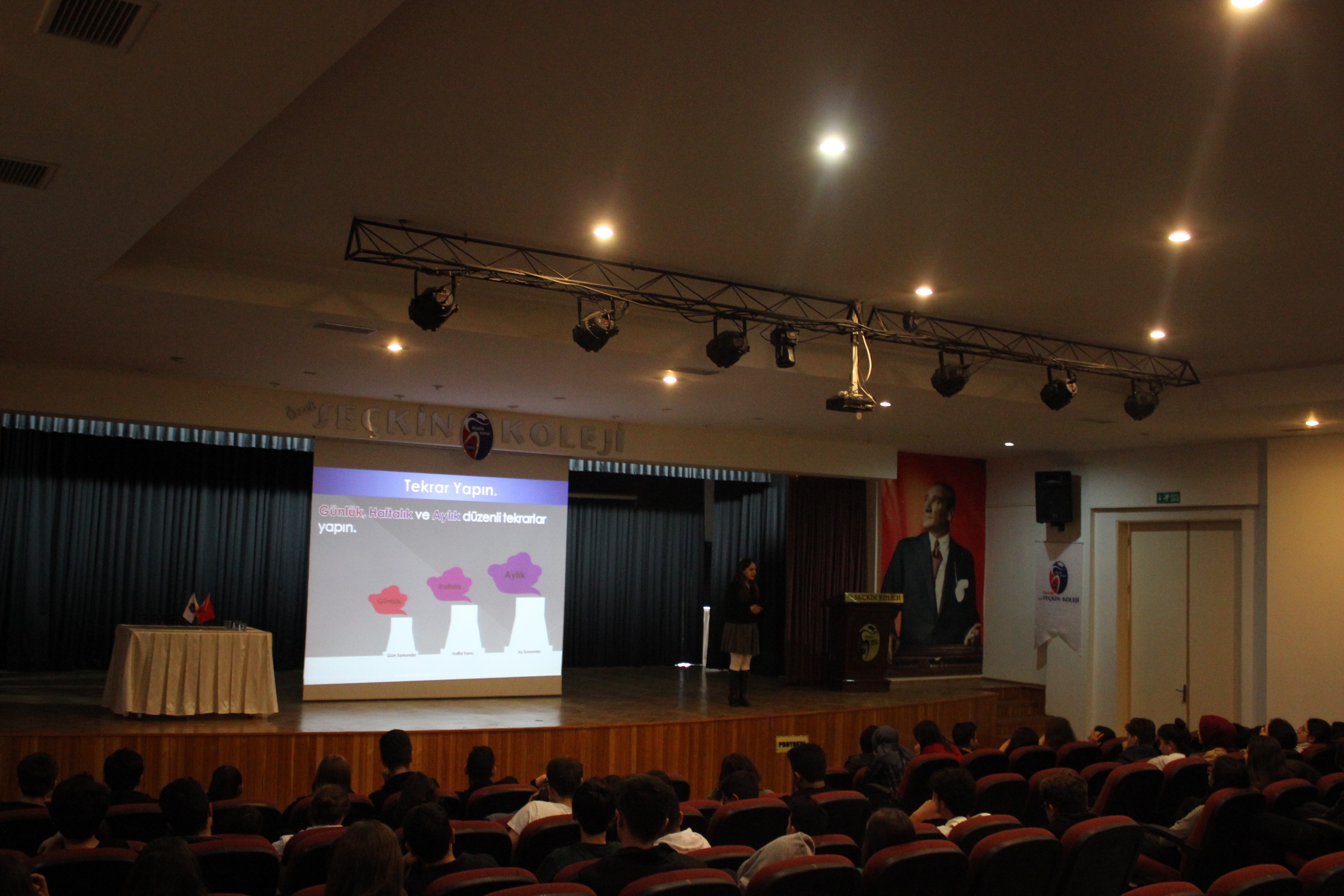 <p>Özel Seçkin Kolejinde lise öğrencilerine Psikolojik Danışman ve Rehber Öğretmeni<br />Pınar Erdemir tarafından akademik başarılarını arttırma,öğrenmeyi kalıcı hale getirme ve doğru çalışma yöntemleri noktasında farkındalık oluşturmak için “Verimli Çalışma<br />Teknikleri” konulu seminer düzenlendi.<br />Özel Seçkin Koleji 9 ve 10.sınıf öğrencilerine yön vermek adına düzenlenen<br />seminerde Pınar Erdemir: “Sınavlara hazırlanırken neler yapılmalı,verimli ders çalışma<br />yöntemleri ile öğrencinin dikkatini ve sınav performansını etkileyecek konular” üzerine<br />öğrencilere bilgiler aktardı. Ayrıca bilgiyi daha iyi, daha hızlı anlayabilmek,uzun süre<br />muhafaza edebilmek ve öğrencilerin süre sıkıntısı yaşamamaları için hızlı okuma teknikleri noktasında da bilgilendirdi.Etkili ve verimli ders çalışmanın bir öğrenciyi başarıya götürecek en önemli faktörlerden biri olduğunu söyleyerek, &amp;quot;Verimli ders çalışma uygun ortamda, belli bir plan dahilinde, odaklanarak yapılan çalışmadır. Dersi derste öğrenmek, yapacak olduğunuz sosyal etkinliklere zaman ve imkan sağlar. Başarabilmek için önce başaracağınıza yürekten inanmanız ve bilinçaltını o yönde yönlendirmeniz gerekir”.dedi.</p>