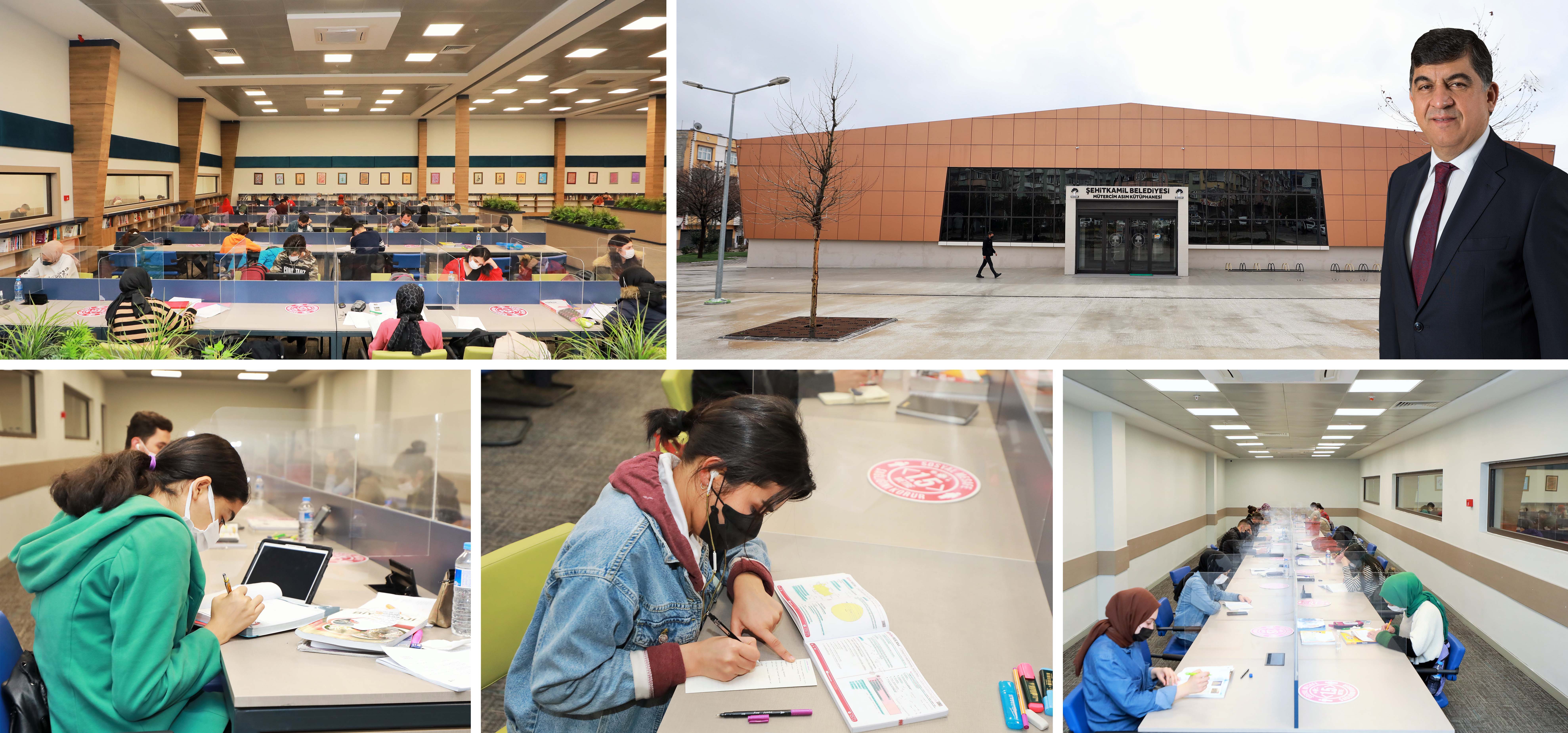<p style="font-weight: 400; text-align: justify;">Öğrencilerin akademik başarılarını arttırarak hedeflerine ulaşmaları için önemli olanaklar sunan Şehitkamil Belediyesi, nitelikli ders çalışma ortamlarıyla öğrencilerin en büyük destekçilerinden biri oluyor. Kamu Personeli Seçme Sınavı'na (KPSS) ve Yükseköğretim Kurumları Sınavı’na (YKS) pandemi kurallarına uygun şekilde dizayn edilen Mütercim Asım Kütüphanesi’nde hazırlanan öğrenciler, tüm imkanlardan ücretsiz yararlanıyor. Gün içerisinde 08:30 ile 22:00 saatleri arasında hizmet veren Mütercim Asım Kütüphanesi, pandemi dolayısıyla yarı kapasite ile çalışıyor.</p>
