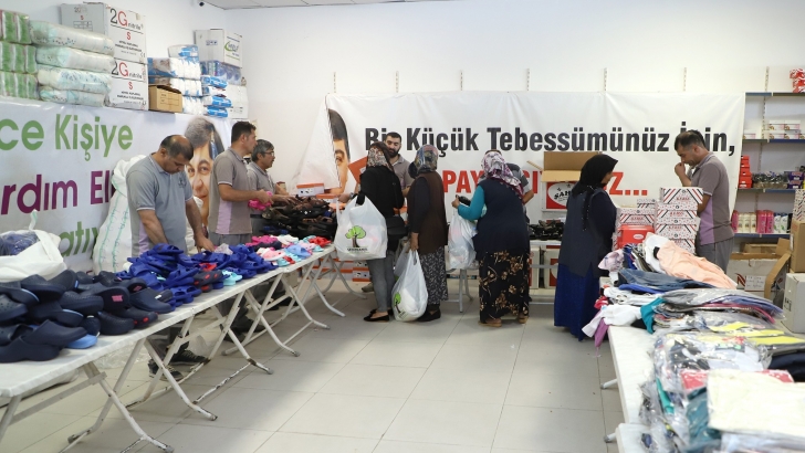 <p>Şehitkamil Belediyesi bünyesinde hizmet veren Gıda Bankası aracılığıyla Kurban Bayramı öncesi binlerce dar gelirli ailenin yüzü güldü. Toplam 11 bin kişiye kıyafet yardımı yapılırken, 2 bin 100 aileye de temizlik malzemesi yardımı yapıldı. Sabahın erken saatlerinde Gıda Bankası’na giden aileler, kendileri ve çocukları için reyonlardan kıyafet seçti. Aileler; ceket, pantolon, gömlek, tişört, etek, elbise, ayakkabı, terlik gibi seçeneklerden kendilerine yakıştırdıklarını aldı. Mutlulukları yüzlerine yansıyan çocuklar, bayramda giymek üzere beğenmiş oldukları elbiseleri ve ayakkabıları tek tek üzerlerinde denedi. </p>
