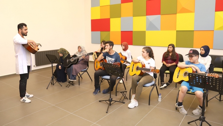 <p class="m_8160096726477613583gmail-MsoNoSpacing">Kişilerin hayallerini gerçekleştirmelerine olanak sunmaya devam eden Şehitkamil Belediyesi, her yaş grubunu kapsayan hizmetlerini aralıksız sürdürüyor. Şehitkamil Sanat Merkezi’nde (ŞSM) açılan gitar kursu büyük ilgi gördü. Üst yaş sınırının olmadığı kursta haftanın iki günü eğitim gören kursiyerler, gitar enstrümanı ile ilgili her türlü bilgiye sahip olmanın yanı sıra istedikleri şarkıyı çalma yeterliliğine ulaşıyor. Kurstan isteyen herkes ücretsiz olarak yararlanıyor.</p>
