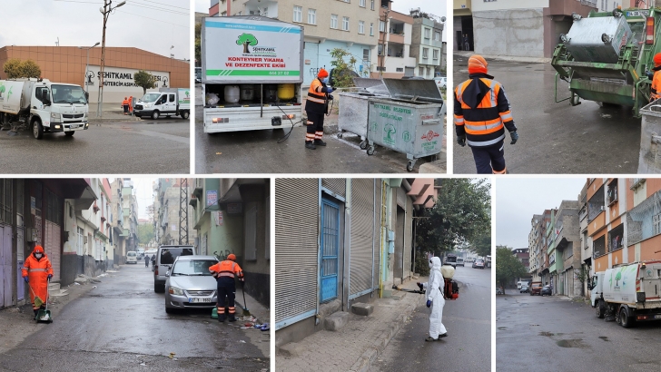 <p style="font-weight: 400;">İlçe genelindeki mahallelerde temizlik ve hijyen çalışmalarını periyodik olarak yapan Şehitkamil Belediyesi, son olarak 29 Ekim Mahallesinde çalışmalarını gerçekleştirdi. Çevre Koruma ve Kontrol Müdürlüğü ekipleri, ilk olarak mahalledeki geniş cadde ve sokakları süpürge araçları ile temizlendi. Araçların giremediği dar sokaklar da süpürülerek temizlendi ve dezenfekte edildi. Mahalle içerisinde yer alan tüm işyerlerinin çevresinin yanı sıra tüm evlerin kapı önleri de ilaçlandı. Ayrıca mahalle sınırları içerisinde bulunan çöp konteynerleri da dezenfekte edilerek sterilize hale getirildi.</p>