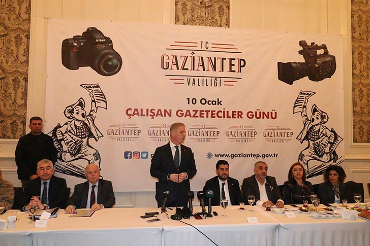 <p>Türkiye'nin her yerinde olduğu gibi Gaziantep'te de "10 Ocak Çalışan Gazeteciler Günü" çeşitli etkinliklerle kutlanırken, Vali Davut Gül gazetecileri kahvaltı organizasyonunda ağırladı. Organizasyonda basın mensuplarının sorunlarını dinleyen ve sorulan soruları yanıtlayan Gül, yapılması çözüm önerileri için basın mensuplarıyla fikir alışverişinde bulundu. <br />Programda açıklamalarda da bulunan Vali Gül, "Bizler "10 Ocak Çalışan Gazeteciler Günü" dolayısıyla sizlerle bir araya gelmek istedik. Bizim de Gaziantep'te 2 aylık görev süremiz yeni bitti. Zaman zaman kentteki gazetecilerle farklı ortamlarda bir araya geliyoruz. Bizler şehri gazetecilerin gözüyle tanıyoruz. Ben bize bu imkanı sağlayan gazetecilere teşekkür ediyorum. Çünkü basın mensupları şehrin hafızasıdır. Sizler bu hafızanızı bizlere aktardıkça, bizlerle paylaştıkça bizler şehri daha iyi tanıyoruz. Şehrin sorunlarına daha iyi çözümler buluyoruz. Ben o yüzden tüm gazetecilerin "10 Ocak Çalışan Gazeteciler Günü"nü tekrardan kutluyorum" diye konuştu. </p>