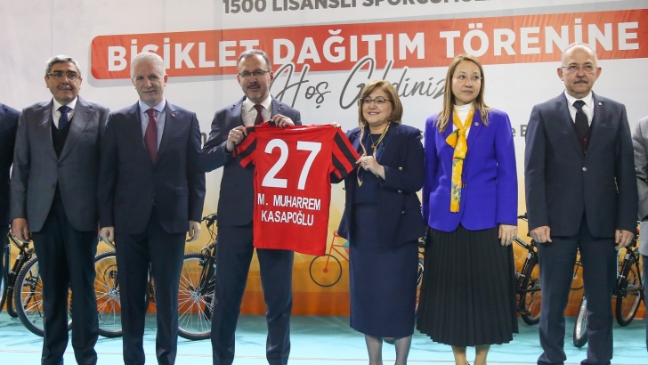 <p style="font-weight: 400;"><strong>GAZİANTEP BÜYÜKŞEHİR, BAKAN KASAPOĞLU’NUN KATILIMIYLA 1500 LİSANSLI SPORCUYA BİSİKLET DAĞITTI</strong></p> <p style="font-weight: 400;"><strong><strong> </strong></strong></p> <p style="font-weight: 400;"><strong><strong>-BAKAN KASAPOĞLU: “TÜRKİYE’NİN EN MODERN YÜZME HAVUZU GAZİANTEP’TE”</strong></strong></p> <p style="font-weight: 400;"><strong><strong> </strong></strong></p> <p style="font-weight: 400;">Gaziantep Büyükşehir Belediyesi (GBB) tarafından Gençlik ve Spor Bakanı Mehmet Muharrem Kasapoğlu’nun katılımıyla GBB Spor Kulübündeki bin 500 lisanslı sporcu için bisiklet dağıtım töreni düzenlendi.</p> <p style="font-weight: 400;"> </p> <p style="font-weight: 400;">Bakan Kasapoğlu, Talat Özkarslı Spor Salonu’nda düzenlenen dağıtım töreninde yaptığı konuşmada Türkiye'nin en modern yüzme havuzunun Gaziantep’te olduğunu dile getirerek, şunları söyledi:</p> <p style="font-weight: 400;"> </p> <p style="font-weight: 400;">“Türkiye'nin en güzel olimpik havuzundan yetişen yeni olimpiyat şampiyonu adaylarını gördük. Artık Gaziantep'in her ilçesinde havuzlarımız var, sizler için. Bu ülkenin birbirinden yetenekli, birbirinden enerjik birbirinden cesur gençleri için. İnanıyorum ki bu havuzlardan, bu salonlardan, bu tesislerden bu şanlı bayrağımız tüm dünyada dalgalandırılacak. İstiklal Marşı'mızı tüm dünyaya dinletecek gençler yetişiyor. Onlarla gurur duyuyoruz."</p> <p style="font-weight: 400;"> </p> <p style="font-weight: 400;">Gaziantep bir gençlik şehri olduğunu vurgulayan Kasapoğlu, “Gaziantep gençlik merkezleriyle gençlik kamplarıyla, yurtlarıyla marka bir şehir. Gaziantep'te gençlik merkezi olmayan ilçemiz inşallah kalmayacak. Bu yönde hızla ilerliyoruz. Türkiye yüzyılında, gençlerin yüzyılında Gaziantep'in yeri apayrı olacaktır. Gençlerimiz bunun en iyisine en güzeline layıktır. Biz de bugün olduğu gibi bundan sonra da gençlerimizin yanında tüm imkanlarımızla var olmaya hep birlikte el ele vermeye devam edeceğiz. Gaziantep’te birbirinden kıymetli üniversiteler var. Güçlü yurt altyapımızın önemli sembollerinden biridir Gaziantep. Bu yıl Gaziantep'te yurtlarımıza başvuran her bir gencimizi yurtlarımıza yerleştirdik. Yüzde yüz yerleştirme Gaziantep'te hayırlı olsun" diye konuştu.</p> <p style="font-weight: 400;"> </p> <p style="font-weight: 400;"><strong><strong>ŞAHİN: DERDİMİZİN DERMANI TÜRKİYE YÜZYILI</strong></strong></p> <p style="font-weight: 400;"> </p> <p style="font-weight: 400;">Gaziantep Büyükşehir Belediye Başkanı Fatma Şahin ise, derdin dermanının Türkiye yüzyılı olduğunu belirterek, şunları söyledi:</p> <p style="font-weight: 400;"> </p> <p style="font-weight: 400;">“Gaziantep, spor şehri oluyor. Müjdeler olsun. 20 yıldan beri alanlardayım. Cumhurbaşkanı Erdoğan’ın liderliğinde yola çıktığımızda, ‘Spor ne kaybetme üzüntüsü ne de kazanma sevincidir’ anlayışıyla hareket ettik. Sporun bir özgüven olduğu bilinciyle hareket ettik ve hizmet verdik. Bakan Kasapoğlu’nu fahri hemşerimiz yaptık. Kendisinin yanına ne zaman hangi talep ile gittiysek 5 katını, 10 katını aldık. Bu şehir Bakan Kasapoğlu’nu ayrı seviyor.”</p> <p style="font-weight: 400;"> </p> <p style="font-weight: 400;">Denizi olmayan Gaziantep’te yüzme şampiyonu çıkarttıklarını anımsatan Başkan Şahin, “Bu şehir birçok kulvarda kendini öne çıkartıyor. Hafta sonu Antalya’da satranç turnuvası vardı. Gaziantep bu alanda da kendini gösterdi ve birincilik unvanı elde etti. Gaziantep’in gençlerinin daha başarılı olması için bir protokol imzaladık ve yetenek taramaları yapmaya karar verdik. Hangi gencimizin hangi alanda yeteneği varsa o yönde geliştirmeyi hedefliyoruz. Böylelikle spor alanındaki başarımızı ilerleteceğiz” dedi.</p> <p style="font-weight: 400;"> </p> <p style="font-weight: 400;">Konuşmaların ardından Başkan Fatma Şahin, Bakan Kasapoğlu’na forma hediye ederek, sporculara bisiklet dağıtımına geçti.</p> <p style="font-weight: 400;"> </p> <p style="font-weight: 400;">Törene Gaziantep Büyükşehir Belediye Başkanı Fatma Şahin ve Bakan Kasapoğlu’nun yanı sıra Gaziantep Valisi Davut Gül, AK Parti Gaziantep Milletvekili Derya Bakbak, ilçe belediye başkanları, il protokolü üyeleri ve sporcular katıldı<strong><strong>.</strong></strong></p> <p> </p>