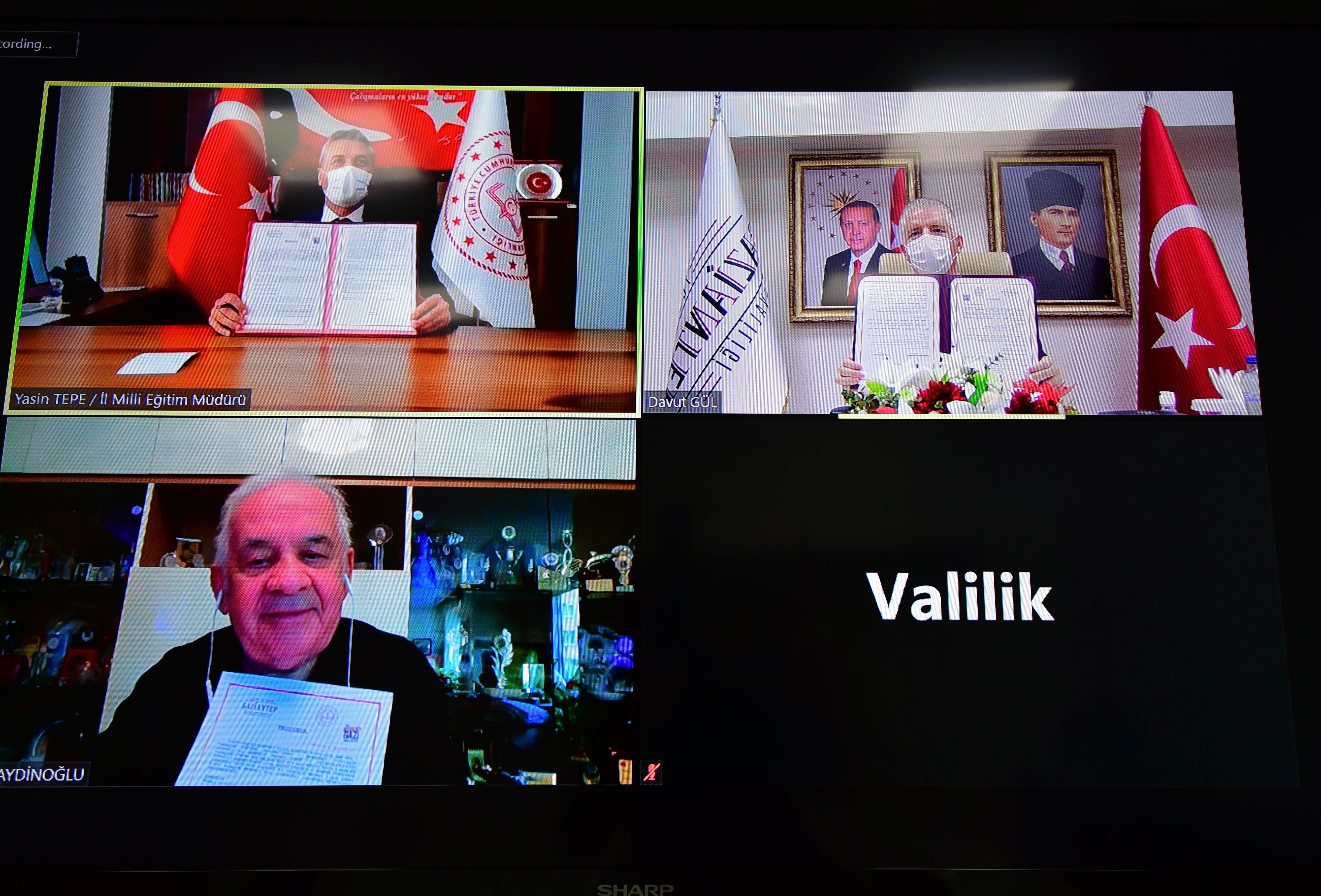<p>Kurucularının tamamı Gaziantepli olan Gönüllü Hizmet Vakfı tarafından Gaziantep’e kazandırılacak 8 derslikli anaokulu için video konferans üzerinden protokol imza töreni gerçekleştirildi.</p> <p>Vali Davut Gül, protokol imza töreninde hayırsever İnal Aydınoğlu nezdinde tüm vakıf üyelerine eğitime verdikleri destekler için teşekkür ederek, “ Gaziantep’teki dört okul başta olmak üzere İstanbul ve diğer yerlerde yaptığınız eğitim ve kültür yatırımlarını, insana yaptığınız yatırımları biliyoruz. Bugün de 8 derslikli bir anaokulunun protokolünü sizlerle imzalıyoruz. Buna da hem gönüllü hizmet vakfı hem ablanız adına isim veriyorsunuz. Burada ise eğitim gönüllüsü olduğunuz kadar iyi bir akraba iyi bir dost olduğunuz da görülüyor. Ablanızı da o anlamda unutmamışsınız. Tebrik ve teşekkür ederiz. Burada yaptığınız her katkının her yatırımın mutlaka çocuklarda, gençlerde, sizden sonra sizin yolunuzda gidecek kişilerde bir karşılığı var. O açıdan sizlere minnettarız. Sizin gibi hayırseverlerin sayısı arttıkça hem Gaziantep’in eğitimle ilgili sorunları daha çabuk çözülmüş olur, hem de biz ‘100. Yılda 100 Hayırsever’ hedefimize daha çabuk ulaşmış olacağız” dedi.</p> <p>İl Milli Eğitim Müdürü Yasin Tepe, hayırsever İnal Aydınoğlu’na yapmış olduğu tüm bağışlar için teşekkür ederek, “İnal başkanın bugüne kadar yaptığı bağışlardan anlaşıldığı üzere kendisi bütün tecrübesini eğitimde hangi alanda noksanlık varsa ilgi odağına almış ve bununla ilgili diğer bağışçılarla bu eksiklikleri kapatmaya çalışmış. Bu anlamda Gaziantep’in eğitimine sunduğu katkılar için de ayrıca teşekkür ediyorum” ifadelerini kullandı.</p> <p>Gönüllü Hizmet Vakfı Başkanı İnal Aydınoğlu, ise bugüne kadar gerçekleştirdikleri çalışmalardan bahsederek, “Dördü Gaziantep’te olmak üzere yedi tane okul bitirdik. İçinde Fen Lisesi, Sosyal Bilimler Lisesi var. Ayrıca Ataşehir’de içinde 21 tane salonu olan büyük bir kültür merkezi bitirdik. Yine şu anda yeni bir kültür merkezi yapıyoruz. Gaziantepli abim Mustafa Saffet adına şu anda bir tıp merkezi yapıyoruz. Şu anda projesi çizilen İnal Aydınoğlu İhtisas Kütüphanesi adında yeni bir kütüphane kuruyoruz. Atatürk ve Milli Mücadele kitaplarının en nadide olanlarını toplayarak bu kütüphanede gençlerimizin yararına sunmaya çalışacağız” diyerek vakıf olarak yaptıkları diğer projeleri anlattı.</p> <p>Konuşmalar sonrasında Şahinbey İlçesi Karataş Mahallesinde eğitime devam eden 8 derslikli Güneykent Anaokuluna Gönüllü Hizmet Vakfı tarafından yapılacak bağış karşılığında isim hakkının verilmesini içeren protokol için imzalar atıldı. Söz konusun okulun isminin ise Gönüllü Hizmet Vakfı Aysel Öğücü Anaokulu olarak anılacağı bildirildi.</p>