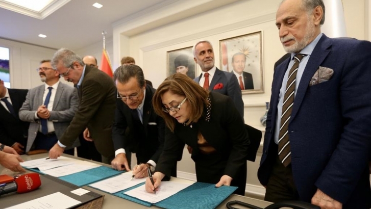 <p>Metropol şehri Gaziantep’te yeşil alanları genişletmek ve korumak amacıyla Büyükşehir Belediyesi koordinatörlüğünde Alman Uluslararası İş Birliği Kurumu (GIZ), Internationaler Bund (IB), Alternatif Yaşam Derneği (AYDER), Darülaceze Vakfı ve İş Kurumu İl Müdürlüğü (İŞKUR) yetkilileri, Büyükşehir Belediye Başkanlığında “GIZ İyi Niyet Antlaşması Protokolü” imza töreninde bir araya geldi. </p> <p>İmza töreninde konuşan Büyükşehir Belediye Başkanı Fatma Şahin, Alman Federal Hükümeti’nin katkılarıyla 550 bin fidan diktiklerini belirterek, “Gaziantep’te 6 milyon avroluk proje tamamlandı. Bu fidanların içerisinde bir zeytin ormanı, bir lavanta ormanı oluşturuldu. Mayıs Ayı’nda Yavuzeli’nde mor bir orman görülmesi hedefleniyor. Havalimanından Gaziantep’e gelen yolda çevre ağaçlandırma çalışmasında sona yaklaşıldı. İstihdama dayalı bir proje yapılacak. Bu kapsamda 250 kişiyi bahçıvan olarak yetiştireceğiz. Antep’i çok daha keyifli ve yeşil bir hale getirmeyi amaçlıyoruz. ‘Yeşil Gaziantep’ düsturuyla havası, suyu ve toprağıyla daha temiz, kişi başına düşen yeşil alanı fazla bir şehirle yeşili korumak amaçlı bize verdikleri desteklerden dolayı tüm paydaşlarımıza teşekkür ediyoruz. Bu proje hem çevreci hem de istihdam üreten bir proje. Burada herkes kazanacak. Devamlılığı ve sürdürülebilirliği kapsamında yoğun çalışıyoruz. Bütün paydaşlara ve ekibime teşekkür ediyoruz. 2020 yılına girerken çok temiz ve sağlıklı bir projeye imza atmış olacağız” dedi.</p> <p>Protokol, imza töreninin ardından günün anısına fotoğraf çektirdi.</p>
