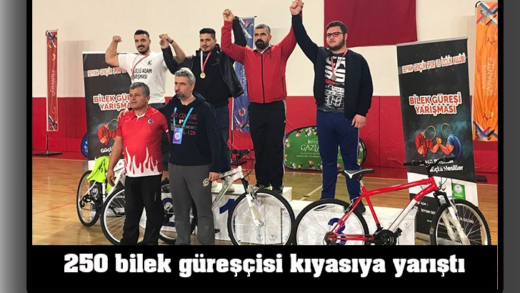 <p>Büyükşehir Belediyesi Talat Özkarslı Spor Salonunda, Gaziantep Gençlik Hizmetleri ve Spor Müdürlüğü ile Seyyah Gençlik Spor ve İzcilik Kulübünün birlikte düzenlediği “2019 Gaziantep Erkekler Bilek Güreşi Turnuvası” sona erdi. <br />250 sporcunun kıyasıya mücadele ettiği turnuva renkli görüntülere sahne oldu. Dereceye giren sporcuların ödülleri, Gaziantep İl Gençlik Hizmetleri ve Spor Müdürü Ahmet Kölemen, Spor Şube Müdürü Serhat Polat , Şehitkamil İlçe Milli Eğitim Şube Müdürü Mehmet Ünal, Bilek Güreşi İl Temsilcisi Yakup Cin ile Seyyah Gençlik Spor ve İzcilik Kulübü Spor Komisyonu Başkanı Ufuk Çıngırlar tarafından verildi. <br />5 kategoride yapılan yarışmalarda birinci ve ikinci olan sporculara bisiklet ve 100 TL para ödülü verilirken, üçüncü olan sporculara sadece bisiklet verildi. <br />Ödül töreninde açıklamalarda bulunan İlçe Milli Eğitim Şube Müdürü Mehmet Ünal, sporunun önemine değinerek ata sporumuz olan bilek güreşinin bir spor dalı olarak yaşatılmasında katkıda bulunan yetkililere, sporculara ve ilgili kişilere teşekkür etti. </p>