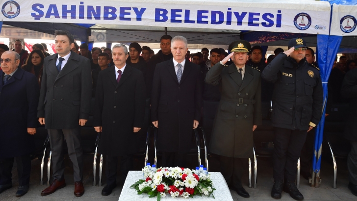 <p>Kilis yolu üzerindeki Şahin Bey’in anıt mezarı başında protokolün buket sunumu, saygı duruşu ve İstiklal Marşı’nın okunmasıyla başlayan törende Mareşal Fevzi Çakmak Ortaokulu ve Akşemseddin Anadolu Lisesi öğrencileri, ‘Şahinbey Ağıdı’ eşliğinde tiyatro gösterisi yaptı.  Tören, Şahinbey Belediyesinin ortaokullar arasında düzenlediği ‘Şahinbey Ağıdı'nı En Güzel Okuma Yarışması’nda birinci olan okullara ödül verilmesi ve Antep Savunması’nın 6317 şehidi başta olmak üzere tüm şehitler için dua edilmesi ile sona erdi.</p> <p>Anıttaki törenin ardından yine Antep Savunmasının önemli isimlerinden Özdemir Bey ve Karayılan’ın mezarı ziyaret edilerek dua edildi.</p> <p>            Törene Gaziantep Valisi Davut Gül, İl protokolü, vatandaşlar ve öğrenciler katıldı.</p> <p> </p>
