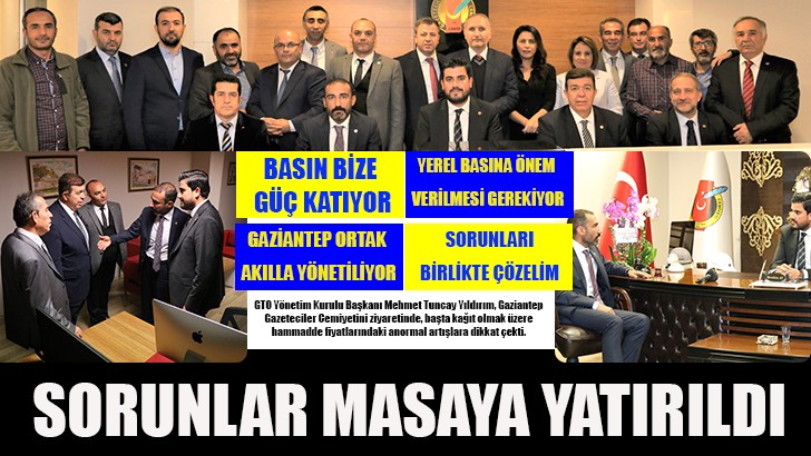 <p class="m_7108080391669644643xmsonormal"><span lang="TR">Gaziantep Ticaret Odası (GTO) Yönetim Kurulu Başkanı Mehmet Tuncay Yıldırım, Meclis Başkanı Mehmet Hilmi Teymur ve Yönetim Kurulu üyeleri Gaziantep Gazeteciler Cemiyeti Başkanı İbrahim Ay ve yönetim kurulu üyelerine hayırlı olsun ziyaretinde bulundu. Ziyarette basının içinde bulunduğu ekonomik sorunlar masaya yatırıldı.<u></u><u></u></span></p>