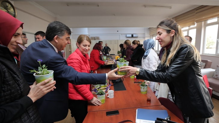 <p>Öğretmenlerin özel günlerini tebrik eden Başkan Fadıloğlu, öğretmenlere belediyeye ait serada yetiştirilen çiçeklerden armağan etti.</p> <p>Her fırsatta okulları ziyaret ederek öğrenciler ve öğretmenlerle buluşan Şehitkamil Belediye Başkanı Rıdvan Fadıloğlu, Öğretmenler Günü dolayısıyla bu kez de Emine Hümayun Özhelvacı Ortaokulu öğretmen ve idarecileriyle bir araya geldi. Öğretmenliğin; emek, özveri, sabır ve hoşgörü gerektiren, bedeli hiçbir maddi karşılıkla ölçülemeyecek kadar kıymetli, dünyanın her yerinde en itibarlı ve onurlu mesleklerden biri olduğunu dile getiren Başkan Rıdvan Fadıloğlu, öğretmenlerin toplum yararına kutsal bir görev ifa ettiğini dile getirdi. Hayatları aydınlatan öğreti, öğüt ve örnek davranışlarıyla rol model olan öğretmenlerin, omuzladıkları bu kutsal vazifeyi layıkıyla yerine getirme gayreti içerinde olduğunu kaydeden Başkan Fadıloğlu, çok okuyan ve sorgulayan, bilim ve teknolojideki gelişmeleri yakından izleyen, bunun da ötesinde bilim ve teknolojide üretebilen bireyler yetişmesinin öğretmenlere bağlı olduğunu vurguladı.</p> <p>Öğretmenlerle uzun süre sohbet eden Başkan Rıdvan Fadıloğlu, öğretmenlere Şehitkamil Belediyesi bünyesinde hizmet veren Peyzaj Bitkileri Üretim Serasında yetiştirilen; saksıda papatya, kekik, hercai menekşe, çin karanfili türlerinde çiçeklerden armağan etti. Emine Hümayun Özhelvacı Ortaokulu öğretmenleri şahsında tüm öğretmenlerin Öğretmenler Günü’nü kutlayan Başkan Fadıloğlu, öğretmenlere; sağlık, huzur, başarı ve mutlu bir ömür diledi. Başkan Rıdvan Fadıloğlu, ebediyete intikal eden öğretmenleri de rahmetle andı.</p> <p>Şehitkamil Belediye Başkanı Rıdvan Fadıloğlu, Öğretmenler Günü dolayısıyla ilçe sınırları içerindeki tüm okullara çiçek ulaştırdıkları bilgisini de verdi.</p> <p><strong>NAZİK DAVRANIŞINDAN DOLAYI ÇOK TEŞEKKÜR EDİYORUZ</strong></p> <p>Ziyarete ilişkin değerlendirmede bulunan Emine Hümayun Özhelvacı Ortaokulu Müzik Öğretmeni Senem Aslı Kaner, “Şehitkamil Belediye Başkanımız Sayın Rıdvan Fadıloğlu, bugün Öğretmenler Günü dolayısıyla ziyarette bulundular. Bizlere, çiçek takdiminde bulundular. Başkanımıza, bu nazik davranışından dolayı çok teşekkür ediyoruz” ifadelerini kullandı.</p> <p> </p>