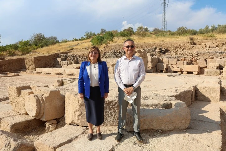 Roma ve Bizans döneminden birçok dini motifle kilise ve tapınak barındıran antik kentte, çalışmaların son durumu hakkında Başkan Fatma Şahin ve Vali Kemal Çeber kazı alanını ziyaret etti. Ziyarette, Roma döneminden kalan tapınak alanında yapılan kazılardaki son durum hakkında uzmanlardan bilgi aldılar.