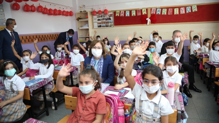 <p style="font-weight: 400; text-align: justify;">Gaziantep genelinde tüm kademe ve sınıf seviyeleri için yeni tip Koronavirüs (Kovid-19) Salgını’na karşı tedbirler eşliğinde 2021-2022 Eğitim Öğretim Yılı’nın ilk zili çaldı. İlk ders gününde Gaziantep Büyükşehir Belediye Başkanı Fatma Şahin, heyecana ortak olmak amacıyla öğrencileri sınıflarında ziyaret etti. GÜRTEKS Mehmet Hayri Özkaya İlkokulu, Sevinç Bahattin Teymur Kız İmam Hatip Lisesi, Şahinbey Şehit Karayılan Turizm Otelcilik ve Meslek Lisesi’nde öğrencilerle buluşan Başkan Fatma Şahin, onlarla sohbet etti, pandemide bulaş riskini azaltmak için uyulması gereken kuralları hatırlattı. Sıralarda öğrencilerle beraber ders dinleyen Başkan Şahin, okullarda kitaplık oluşturarak kitap takviyesi yapacağının müjdesini verdi. Başkan Şahin, daha sonrasında öğretmenlerle bir araya gelerek fikir alışverişinde bulundu. Pandemide eğitim sürecinin aksamadan devam edebilmesi için öğretmenlere büyük iş düştüğünü söyleyen Gaziantep Valisi Davut Gül ise “Alt yapı hazır, sürdürebilir kılarak koruyucu önleyici tedbirleri devam ettirmeliyiz” dedi.</p>