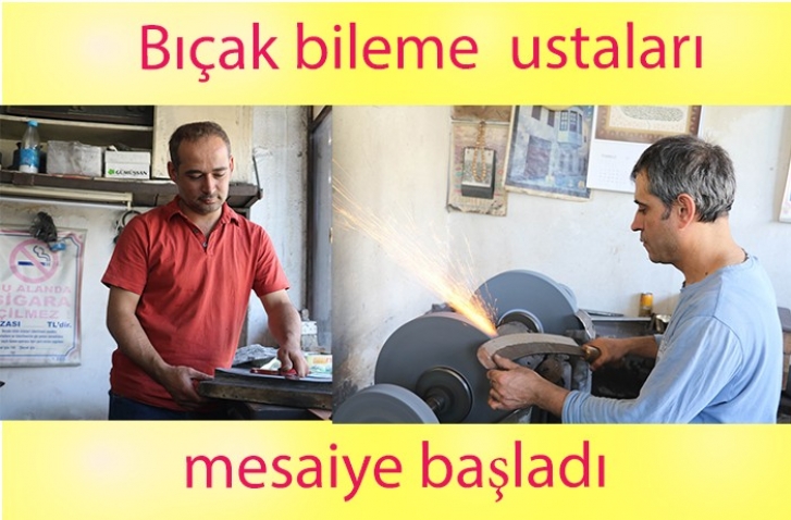 <p>Bıçak bileme ustası Ökkeş Bulutgöz yavaş yavaş mesaiye başladıklarını belirterek, “Kurban Bayramı yaklaşıyor, kurban kesecek kasaplar, evde et kesecek olan vatandaşlar bıçaklarını bize getirip biletiyor. Bu sene geçen seneye göre daha sakin geçiyor. Vatandaşlar yeni bıçak almak yerine eski bıçaklarını bize getiriyor. Fiyatlarımız uygundur. Bıçakları 2,5 TL, satırları ise 5 TL’ye biletiyoruz” diye konuştu.</p>