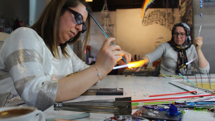 <p>Gaziantep’te Kültür Sanat Merkezi’ne dönüştürülen Eski Adliye binasında kurulan Cam Atölyesi'nde ince cam çubuklar bin 200 derece sıcaklıkta eritilerek küçük oyuncaklar, boncuk, kolye, bileklik, yüzük, küpe, anahtarlık ve çeşitli aksesuarlar yapılıyor. Yapılan eserleri, isteyen kursiyerler satıp para kazanabiliyor. <br />Gaziantep Büyükşehir Belediyesi Sanat ve Meslek Edindirme Kursları (GASMEK) bünyesinde eğitim veren Cam Atölyesi bugüne kadar birçok kişiye eğitim vererek onlara cam çubuklardan aksesuar ve oyuncak yapmayı öğretti. Katılımcıları hem sertifika hem de meslek sahibi yapan Cam Atölyesi’nde eğitimlerini tamamlayanlar cam çubukları kolaylıkla takı ve diğer süs eşyalarına dönüştürebiliyor, yaptıkları eserleri ise satıp para kazanabiliyorlar. <br /><br />"Bin 200 derecede cam şekillendirme yapıyoruz" <br />Birleşmiş Milletler (BM) ve Gaziantep Büyükşehir Belediyesi ortaklığında kurulan cam sanatı kursu özellikle gençlerden ve kadınlardan büyük ilgi görüyor. Kursa gelen katılımcılara eğitim veren Özge Kürümlüoğlu, "Burada cam boncuk eğitmenliği yapıyorum. Burada genel olarak alevde cam şekillendirme yapıyoruz. Cam çubukları bin 200 derecede eriterek boncuk ve oyuncak yapıyoruz. Sonrasında ise yapılan boncukları ve diğer eşyaları kursiyerlerimize veriyoruz. Bu kursta eğitimlerimiz ise üç buçuk ay sürüyor. Özellikle kuş, nazar boncuğu ve kaplumbağa gibi şeyler yapıyoruz. Ayrıca bu bir meditasyon olarak da kullanılabiliyor. Öğrencilerimiz bu uğraşın kendilerine çok iyi geldiğini söylüyor. O yüzden biz bu kursumuza herkesi bekliyoruz. Kurslarımız ücretsizdir ve 16 yaş üzeri kadın erkek herkese açıktır" dedi. <br /><br />"Hobi olarak başladım" <br />Atölyede cam çubuklardan bir çok aksesuar yapan ve yaptıkları eserleri satarak kendi parasını kazandığını söyleyen Şule Elbeyi, "Bir yıldır bu kursa geliyorum. Burada çeşitli cam teknik eğitimleri aldım. Bu bir yılın sonunda kendi internet sitemi açarak yaptığım eserleri kendim satmaya başladım. Yani hobi olarak başladığım bu işte kendi paramı kazanacak noktaya geldim" şeklinde konuştu. <br /><br />"Can sıkıntısından başladım" <br />Emekli olduktan sonra kursa sıkıldığı için kursa geldiğini ifade eden emekli devlet memuru Nazmiye Bakmaz ise, "Emekli olduktan sonra büyükşehir belediyesinin ücretsiz kursları olduğunu öğrendim. Daha sonra burada Özge Hocamla tanıştım ve kursa başlamaya karar verdim. İlk başlarda biraz zorlandım hatta bırakmayı bile düşündüm ama sonrasında zevk almaya başladım. Ondan sonra da bırakamadım. Yani burada vaktin nasıl geçtiğini bile anlamıyorum. Çok keyifli ve benim için de bir terapi niteliği taşıyor. O yüzden herkese tavsiye ediyorum. Burada emeği olan herkese ve Gaziantep Büyükşehir Belediye Başkanı Fatma Şahin’e çok teşekkür ediyorum" diye konuştu. </p>