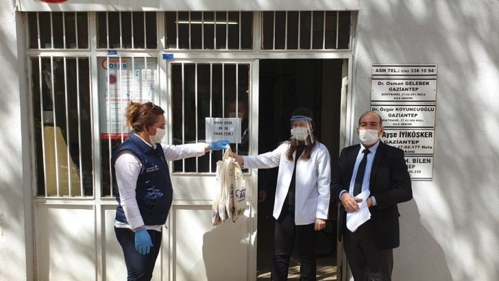 <p style="font-weight: 400;">Gaziantep Ticaret Odası’yla yürütülen ortak çalışmayla şehir merkezinde bulunan aile sağlığı merkezinde görev yapan aile hekimlerine 514 tane yüz siperliği ve maske dağıtıldı.</p>