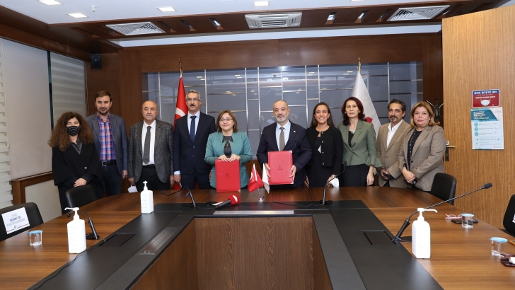 <p style="font-weight: 400; text-align: justify;">Kente kazandırılması planlanan kültürel ve sanatsal yapılar için ilk adım HKÜ Senato Salonunda atıldı. GBB Başkanı Fatma Şahin ve HKÜ Rektörü Türkay Dereli’nin imzalarını attığı protokol töreninde; HKÜ Rektör Yardımcısı Prof. Dr. Özge Hacıfazlıoğlu, HKÜ Genel Sekreteri Ümit Şahnaoğlu, HKÜ İletişim Fakültesi Dekanı Prof. Dr. Gül Rengin Küçükerdoğan, GBB Başkan Vekili Erdem Güzelbey, GBB Kültür ve Turizm Daire Başkanı Oya Alpay ile GBB Gençlik ve Spor Daire Başkanı Zekeriya Efiloğlu da bulundu.<strong> </strong></p>