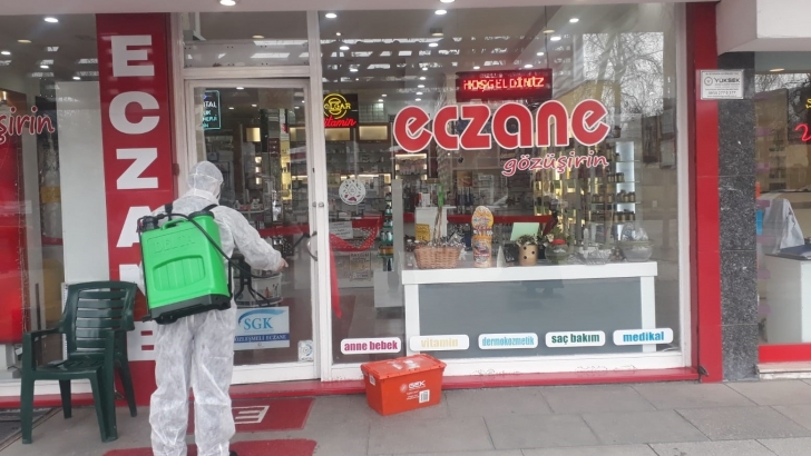 <p style="font-weight: 400;">Kent genelinde halka yoğun hizmet veren eczanelerde alışveriş esnasında herhangi bir enfeksiyona maruz kalınmaması için yeni bir çalışma organize edilerek Gazi şehirdeki tüm eczaneler dezenfekte edildi. Bu hedeften hareketle ise kısa sürede özellikle Avrupa’da yayılan virüse karşı daha güçlü tedbirler alınarak salgın tehdidinin ortadan kaldırılması amaçlandı.</p>