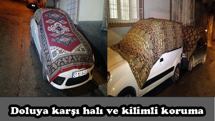 <p>  Gaziantep'te yapılan şiddetli dolu uyarısının ardından Nizip, Yavuzeli, Araban ve Oğuzeli ilçelerinde vatandaşlar sokağa park ettikleri araçlarını kendilerine has yöntemlerle doludan korumaya çalıştı. Vatandaşlar evlerinden getirdikleri kilim ve halılarla araçlarının üzerini örterek doludan korumaya çalıştı. Kent merkezinde gece boyu şiddetli yağış etkili olurken beklenen dolu ise yağmadı.</p>