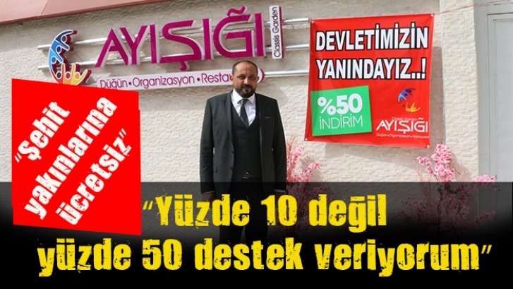 <p>Gaziantep'te düğün salonu işletmecisi Fatih Demir enflasyonla topyekun mücadele destek vermek amacıyla salon fiyatını yüzde 50 indirdi. </p> <p>Daha önce şehit ailelerine düğün salonunu ücretsiz yapan ve 10 bin dolar bozduranlara çeşitli indirimler sağlayan Düğün Salonu İşletmecisi Fatih Demir, bu sefer enflasyonla mücadeleye destek verdi. Demir, Aralık Ocak ve Şubat ayında düğün salonunun ücretine yüzde 50 indirim yaptı. </p> <p><br /><strong>“Yüzde 10 değil yüzde 50 destek veriyorum” </strong></p> <p><br />Enflasyonla mücadele kapsamında düğün salonuna yüzde 50 indirim yaparak destek verdiklerinin altını çizen Demir, “Son günlerde dış güçlerin müdahalesi sonucu döviz yükseldi. Turizm düşmedi, ihracat düşmedi ekonomimiz kötü değilken bize dolar üzerinden oyun oynuyorlar. Bizde vatandaş olarak bunların farkındayız. Gün bugündür, 15 Temmuzda yapılan operasyon gibi devletimizin yanında durmalıyız. Enflasyonla mücadele sonuna kadar destek veriyorum. Bende salon fiyatım da yüzde 10 değil, yüzde 50 destek veriyorum. Bugünden itibaren Aralık, Ocak ve şubat aylarında düğün salonumun fiyatını yüzde 50 indirme kararı aldım. Herkesin bu kampanyada elini taşın altına koyması gerekiyor” dedi. </p> <p><br /><strong>“Şehit yakınlarına ücretsiz” </strong></p> <p><br />Yılın 12 ayı şehit ailelerine düğün salonlarının ücretsiz olduğunu söyleyen Fatih Demir, “Yılın 12 ayı şehit ailelerine ücretsiz düğün salonumuzu veriyoruz. Çünkü onlar bizim ülkemizin kutsal emanetleridir. Devletimiz için, vatanımız için, milletimiz ve şehitlerimiz için her zaman canımız, malımız seferberdir” diye konuştu. </p>