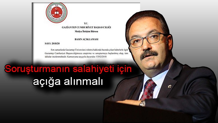 <p>Cumhuriyet Başsavcılığı'ndan yapılan yazılı açıklamada, şu ifadeler yer aldı: "Son zamanlarda Gaziantep Üniversitesi Rektörü hakkında basında çıkan haberlerle ilgili Cumhuriyet Başsavcılığımızca araştırma ve soruşturmaya başlanılmış olup, tüm iddialar incelenmektedir. Kamuoyuna saygıyla duyurulur."</p>
