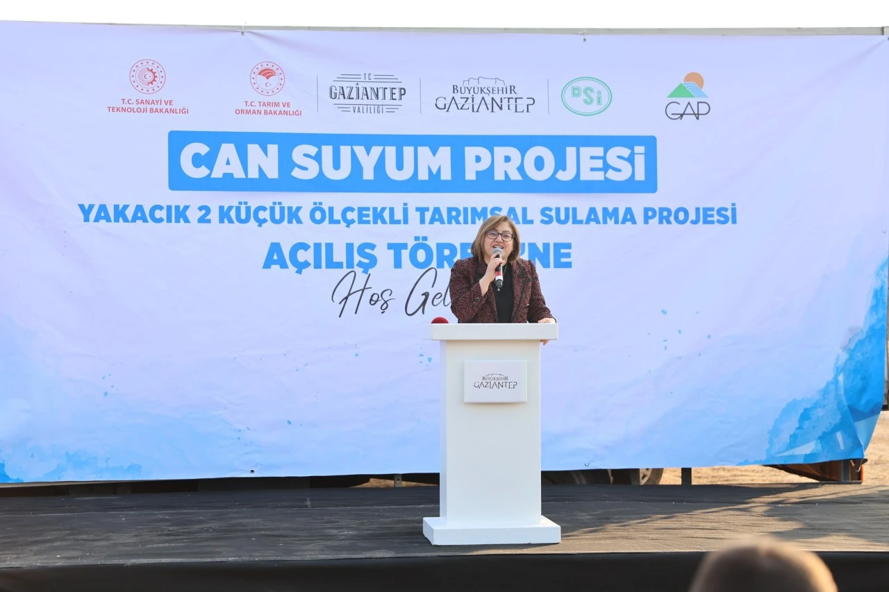 Gaziantep Büyükşehir Belediye Başkanı Fatma Şahin yaptığı konuşmada bereketli bir coğrafyada olduğunu, sulamanın önemine vurgu yaparak şunları söyledi: