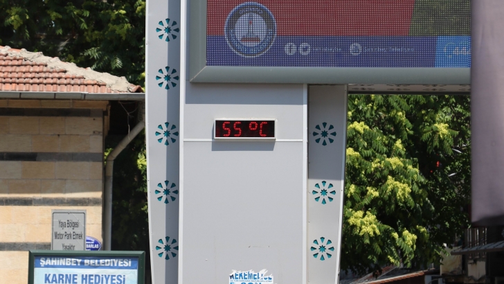 <p>Aşırı sıcaklar Güneydoğu Anadolu'yu etkisi altına alırken, Gaziantep'te termometreler 55 dereceyi gösterdi. Sıcaktan bunalan vatandaşlar ise parklara akın etti. Kentte termometreler 55 derece ile yılın en yüksek göstergesini gördü. <br />Meteoroloji Bölge Müdürlüğü, yüksek sıcaklıklar nedeniyle oluşması muhtemel güneş çarpmasına karşı dikkatli olunması uyarısında bulundu. <br />Günlerdir etkili olan sıcak havanın önümüzdeki haftada da devam edeceği belirtildi. </p>