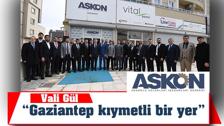 <p>Ziyaretleri kapsamında Anadolu Aslanları İş Adamları Derneği’ni de ziyaret eden Vali  Gül, burada yaptığı açıklamada Gaziantep’in kıymetli bir yer olduğunu ve kentte önemli yatırımların gerçekleştiğini söyledi. </p> <p><br />Gaziantep’te sanayi ile ilgili iki önemli gelişmenin olacağını aktaran Vali Gül, “Bu gelişmelerden birincisi limanlara daha kolay ulaşım. Amanos tünellerinin yapılması ile kısa mesafede limana ulaşılacak. Bu ihracatçı açısından önemli bir gelişmedir. İkincisi ise lojistik merkezin yapılması. Yurtiçi ve yurtdışına günde 13 bin kamyon malzeme gidiyor. Bunların lojistik merkeze gitmeleri şehre nefes aldıracak” diye konuştu. </p>