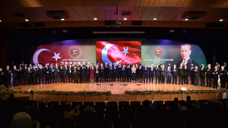 <p style="font-weight: 400; text-align: justify;">Gaziantep’in Yıldızları Ödül Töreni, sanayicileri yeşil üretime ve çevreci yaklaşımlara teşvik etmek, gelecek nesillere yeşil ve temiz bir gelecek inşa edebilmek ve yenilikçi stratejilerle sürdürülebilir bir ekonomik kalkınmayı mümkün kılmak hedefiyle bu yıl “Verimlilik ve Yeşil Gelecek” farkındalığı temasıyla gerçekleştirildi. </p>