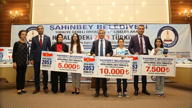 <p style="font-weight: 400;">Şahinbey Belediyesi tarafından düzenlenen “Hayalimdeki 2053 Türkiye’si” kompozisyon yarışmasına katılan ortaokul ve lise öğrencilerinin birincileri ve dereceye giren öğrenciler ödüllendirildi.</p> <p style="font-weight: 400;"> Şahinbey Belediyesi’nin Türkiye çapında düzenlediği ve on binlerce kişinin katıldığı Hayalimdeki 2053 Türkiye’si’ kompozisyon yarışmasında başarılı olan öğrenciler velileriyle birlikte Gaziantep’e geldiler. Türkiye’nin dört bir tarafından gelen 85 öğrenci, 32 öğretmen ve velileri Şahinbey Belediyesi tarafından Gaziantep kültürüne yakışan misafirperverlikle ağırlayarak Şahinbey Belediyesi’nin Türkiye’ye damga vurmuş projelerini tanıttı.</p> <p style="font-weight: 400;"> İLÇEMİZ İSMİNİ KAHRAMAN ŞAHİNBEY’DEN ALDI</p> <p style="font-weight: 400;">Şahinbey Belediye Başkanı Mehmet Tahmazoğlu, il dışından gelen öğrencilere ve velilere Şahinbey’i anlatarak, “Şahinbey Gaziantep’in merkez ilçesi. Şahinbey İlçelimiz de 902.424 kendi vatandaşımızın yanı sıra 300.000’in üzerinde Suriyeli misafirimiz bulunuyor. Toplamda 1.200.000’den fazla kişi Şahinbey İlçemizde yaşıyor. Şahinbey ismi Gaziantep’in Kurtuluşunda Kilis yolunu keserek, silah arkadaşlarıyla birlikte Fransızları durduran ve köprübaşında şehit edilen  kahramanımızın ismidir. Esas ismi Mehmet Sait olup, lakabı Şahinbey’dir. Dolayısıyla 1989 yılında ilçemiz kurulurken, o büyük kahramanın ismi ilçemize verildi” dedi.</p> <p style="font-weight: 400;"> </p> <p style="font-weight: 400;">GENÇLİK BİZİM GELECEĞİMİZ</p> <p style="font-weight: 400;">Hayalimdeki 2053 Türkiye’si’ kompozisyon yarışmasının mimarı Şahinbey Belediye Başkanı Mehmet Tahmazoğlu, “Ekibimizle birlikte Şahinbey’de zor bir alanda görev yapmamıza rağmen belediyecilikte, eğitimde, sosyal belediyecilikte ve gençlik projelerinde çığır açarak yatırımlarımıza devam ediyoruz. Şu anda 113 Gençlik Merkezi ve Sosyal Tesislerimizde gençlerimize kurslar veriyoruz. Eğitim her şeyin başı ve eğitim olmadan hiçbir şey olmuyor. Gençler bizim geleceğimiz. Gençlerimize ve eğitime ne kadar çok yatırım yaparsak, ülkenin geleceğine de o kadar çok yatırım yapmış oluyoruz. 2015 yılında başlattığımız Gaziler Diyarından Şehitler Diyarına projemizle şu ana kadar 75.000 lise öğrencimizi uçakla Gaziantep’ten Çanakkale’ye götürerek şehitler diyarını ziyaret ettirdik. Atalarımızın şehit kanlarıyla sulayarak bizlere emanet ettiği bu cennet vatanı muhasır medeniyetler seviyesine ulaştırmak için çok fazla çalışmamız gerekiyor. Şu an ortaokul ve lisede okuyan öğrencilerimiz 2053 Türkiye’sini gerçekleştirecek nesil. Yaşları şu anda 15-17 yaşında olan öğrencilerimiz 2053 yılında 50’li yaşlarında olacaklar. Bu öğrencilerimiz, ülkede Cumhurbaşkanı, Bakan, Milletvekili, Vali, işadamı ve öğretmen olacaklar. Ama nasıl bir Türkiye hayal ediyoruz. Biz bunu merak ettik ve bu nedenle Türkiye çapında bu kompozisyon yarışmasını düzenledik ve bize 19.377 tane kompozisyon başvurusu geldi. Üniversiteden ve Milli Eğitim Müdürlüğü’nden kurduğumuz jüri ile kompozisyonlar tarandı ve içerisinden 50 ortaokul ve 50 lise öğrencilerimizden oluşan ilk 100 kişiyi buraya davet ettik. Bu projede emeği geçen tüm velilerimize ve öğretmenlerimize teşekkür ediyorum” dedi.</p> <p style="font-weight: 400;"> BAŞKAN TAHMAZOĞLU’NUN DESTEĞİYLE İŞİMİZ DAHA KOLAY</p> <p style="font-weight: 400;">Şahinbey İlçe Milli Eğitim Müdürü Yasin Tepe, Şahinbey Belediye Başkanı Mehmet Tahmazoğlu’nun eğitime çok büyük ve önemli katkıları olduğunu belirterek, “Hayalimdeki 2053 Türkiye’si’ projesinde sizlerle bir arada olmaktan mutluluk duyuyorum. Şahinbey’de İlçe Milli Eğitim Müdürü olmak hem çok zor, hem de çok kolay. Zor diyorum çünkü 65 ilden ve 18 büyükşehirden daha büyük ve daha kalabalık bir ilçe. Geçmişten bu yana sorunlarıyla birlikte gelen ve yeni hizmetler bekleyen bir alan. Bu zorluklar içerisinde 300 tane kurumu idare edebilmek, 234.000 yavrumuza hizmet edebilmek ve Suriyeli misafirimizin 34.000 tane çocuklarını okullarımızda himaye altına almak çok zor şeyler. Ancak ben bu zorluğu çok değerli buluyorum. Başkanım Sayın Mehmet Tahmazoğlu’nun güçlü destekleri sayesinde çok rahat bir şekilde yürütüyoruz. Başkanımız yürüttüğü projelerle eğitime önemli destekler sunmuştur” dedi.</p> <p style="font-weight: 400;"> </p> <p style="font-weight: 400;">ÖDÜLLENDİRİLDİLER</p> <p style="font-weight: 400;">Yarışmada ortaokul ve lise kategorisinde ilk 50’ye giren öğrencilere tablet bilgisayar ve 2 günlük gezi ödülü verildi.  Ortaokullarda birinciliği “Türk İmparatorluğu’na Hediye Edilen Kalp” yazısıyla Muğla/Bodrum’dan Suat Aydın, ikinciliği “2053’ten Merhaba” yazısıyla Hatay/Dörtyol’dan Beyza Keleş, üçüncülüğü “Düşümde” yazısıyla Adıyaman/Besni’den Kardelen Çırak kazandı.  Lise öğrencileri kategorisinde birinciliği “Türkiye’m Uyandı” yazısıyla Rize/Güneysu’dan Efran Aydın, ikinciliği “Gökbörü 2053” yazısıyla Ankara/Altındağ’dan Hüseyin Karsavuranoğlu, üçüncülüğü “Hayalden Gerçeğe” yazısıyla Gaziantep/Şahinbey İlçesi’nden Soner Tibik kazandı. Düzenlenen yarışama da birincilere 10.000, ikincilere 7.500 ve üçüncülere 5.000 TL para ödülü verildi.</p> <p style="font-weight: 400;"> </p> <p style="font-weight: 400;">Şahinbey Belediyesi Toplantı Salonunda düzenlenen törene Şahinbey Belediye Başkanı Mehmet Tahmazoğlu’nun yanı sıra Şahinbey İlçe Milli Eğitim Müdürü Yasin Tepe, başkan yardımcıları, protokol üyeleri ve öğrenciler katıldı.</p> <p