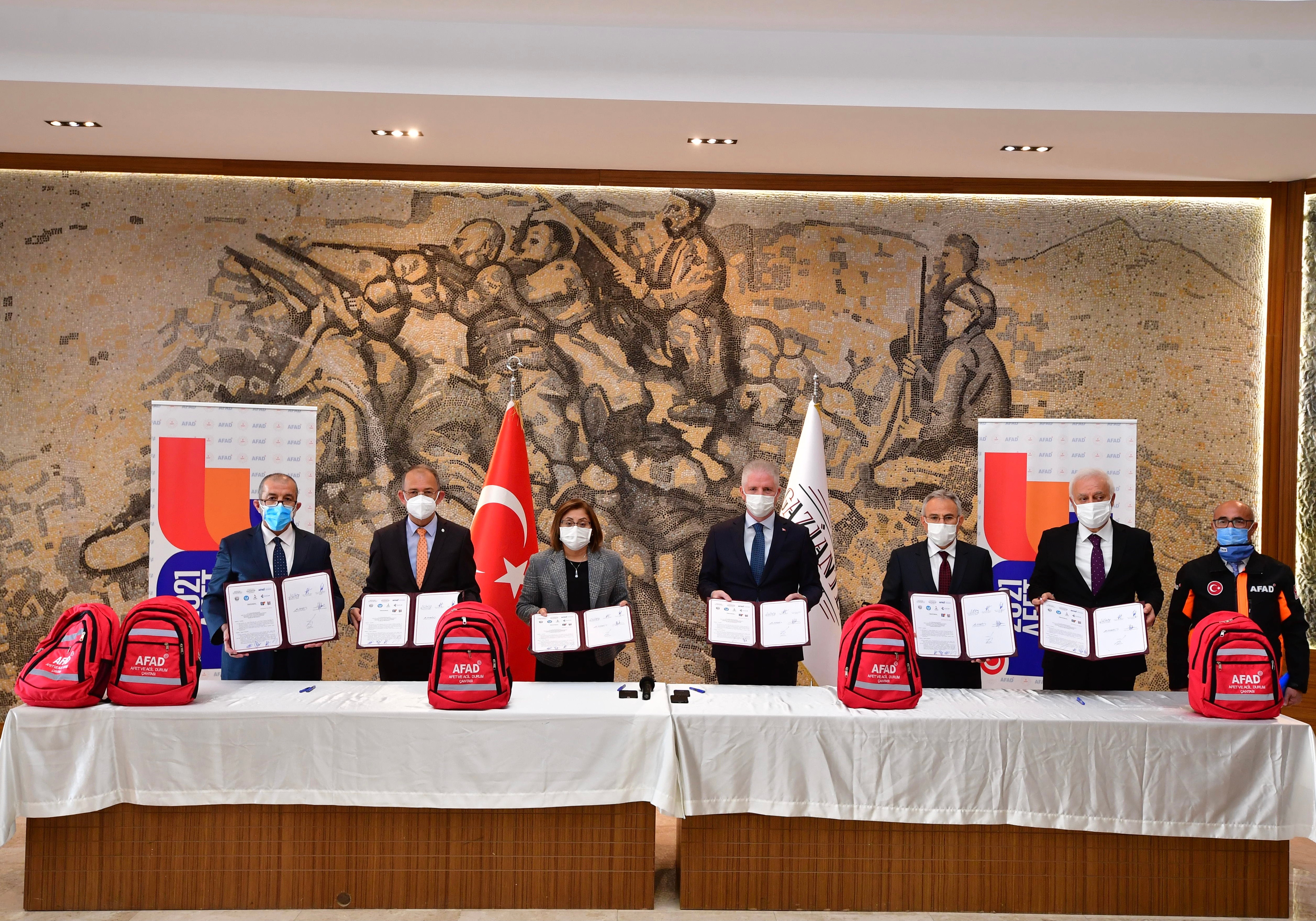 <p style="text-align: justify;">Gaziantep’te, faaliyet gösteren Üniversiteler ile AFAD arasında Afet Farkındalık Eğitimi İşbirliği Protokolü imzalandı.  “2021 Türkiye Afet Eğitim Yılı” kapsamında yürütülecek afet farkındalık faaliyetleri, afet ve acil durum ile sivil savunma faaliyetlerinin yürütülmesini içeren işbirliği protokolü ile gençlerde afet bilincinin oluşturulması hedefleniyor.</p> <p style="text-align: justify;">Valilik’te düzenlenen protokol imza törenine, Gaziantep Valisi Davut Gül’ün yanı sıra, Büyükşehir Belediye Başkanı Fatma Şahin, Gaziantep Üniversitesi Rektörü Prof. Dr. Arif Özaydın, Sanko Üniversitesi Rektörü Prof. Dr. Güner Dağlı, Gaziantep İslam Bilim ve Teknoloji Üniversitesi Rektörü Prof. Dr. Nihat Hatipoğlu, Hasan Kalyoncu Üniversitesi Rektörü Prof. Dr. Türkay Dereli ile AFAD İl Müdürü Bekir Şen katıldı.</p> <p style="text-align: justify;">Vali Davut Gül, protokol imza töreninde yaptığı konuşmada, afet farkındalık eğitiminin önemine değinerek Gaziantep’te bulunan 70 bin öğrenci başta olmak üzere toplumun tüm kesimlerine afet farkındalık eğitimini vermeyi hedeflediklerini kaydetti.</p> <p style="text-align: justify;">Gaziantep’in birlikte iş yapma kültürünün en güzel sergilendiği şehirlerin başında geldiğini belirten Vali Gül,  “Özellikle Büyükşehir Belediyesi başta olmak üzere üniversitelerimiz de dâhil her alanda bunu görüyoruz. İçişleri Bakanımız Sayın Süleyman Soylu’nun bir hedefi var; AFAD’ın koordinesinde, 51 milyon vatandaşımızın afet farkındalık eğitiminden geçmesi. Bu şu anlama geliyor, çocukların, çok yaşlıların ve buna benzer grupları çıkartırsak hemen hemen toplumun tamamının eğitimden geçmesi lazım. Biz üniversiteler şehriyiz. Yaklaşık 70 bin öğrencimiz var. Burada beklentimiz öğrencilerin bu eğitimi alması, aldığı eğitimi birilerine anlatması ve olası deprem anında AFAD gönüllüsü olarak görev almaları. Üniversitelerimizdeki akademisyenler, öğretim görevlileri,  öğrencileri ile çok rahat bunu yapabiliriz” dedi.</p> <p style="text-align: justify;">2021 yılının öncelikli iki konusunun pandemi ile mücadele ve afet eğitimi olduğuna dikkat çeken Vali Gül, bu iki önemli konunun da en kısa zamanda gündemden çıkarılması temennisinde bulundu.</p> <p style="text-align: justify;">Büyükşehir Belediye Başkanı Fatma Şahin,  ülke ve şehir olarak riskli bölgede olunduğuna dikkat çekerek tedbir alınması gerektiğini söyledi.</p> <p style="text-align: justify;">Başkan Şahin, “Baktığımız zaman hem ülkemizde hem bölgemizde hem şehrimizde risk haritasına göre riskimiz yüksek dolayısıyla tedbirimizi almamız gerekiyor. Bu yıl İçişleri Bakanlığımız tarafından Afet Farkındalık Eğitim Yılı olarak ilan edildi. Şehrimizde dört üniversite var. Bu yüzden hocalarımızın bu alanda biz de varız demesini çok kıymetli buluyorum. Biz iki önemli iş yaptık, bir tanesi Belediyeler Birliği olarak bütün belediye çalışanlarının, 800 bin çalışanın eğitim alması noktasında bir çalışma başlattık. Bu eğitimden sonra da yarışma yapıyoruz ve eğitimde öne çıkanları Japonya başta olmak üzere bu işi iyi yöneten ülkelere göndererek ödüllendiriyoruz. Ayrıca bundan önce yine yaklaşık 12 sivil toplum kuruluşumuzun gönüllülük esasıyla deprem master planı protokolü imzaladık. Büyükşehir Belediyesi olarak deprem master planı yapıyoruz. TÜBİTAK ile çalışıyoruz. Statiğini çalıştırıyoruz ama şehirde üst yapıda hangi bina ne kadar depreme dayanıklı test edilmesi gerekiyor. Odalarımız gönüllü olarak kendilerinin bu testi yapabileceğini söylediler. Valimizin başkanlığında o imzayı attık. Şimdi de öncesi, sırası ve sonrası ile ilgili büyük bir eğitim vermek, iyi bir denetim yapmak gerekiyor. Zaten afet sonrasında çok iyiyiz.  Büyük millet olmanın getirdiği dayanışma ruhunda çok başarılıyız ama öncesine dönüp koruyucu önleyici tedbirleri kuvvetlendirme için bu eğitimler, imzalar önemli” diye konuştu.</p> <p style="text-align: justify;">İslam Bilim ve Teknoloji Üniversitesi Rektörü Prof. Dr. Nihat Hatipoğlu, AFAD’ın Türkiye’de çok önemli bir görev icra ettiğini dile getirerek, “Tabi iş afet ve musibet olunca İslam Bilim ve Teknoloji Üniversitesi olarak bizim bir adım daha öne çıkmamız gerekiyor. İşin iki boyutu var. Birincisi afet gelmeden önce hazırlık yapmak, bu dinin de bir görevi, aklın da bir gereği, ikincisi ise afet, musibet geldikten sonraki süreçte ne yapılması gerektiği konusu. Orada da tabi ki moral değerler, iman, psikolojik savrulmama, bu gibi konular bizim toplumumuzda güçlü bir şekilde elhamdülillah. Biz de üniversite olarak eğitim noktasında yapılabilecek ne varsa burada AFAD’ın yanında olacağız. Eğitim sürecinde elimizden geleni yapmaya çalışacağız” şeklinde konuştu.</p> <p style="text-align: justify;">Gaziantep Üniversitesi Rektörü Prof. Dr. Arif Özaydın, Üniversite olarak AFAD’ın yanında olduklarını söyleyerek emeği geçenlere teşekkür etti.</p> <p style="text-align: justify;">Hasan Kalyoncu Üniversitesi Rektörü Prof. Dr. Türkay Dereli ise Hasan Kalyoncu Üniversitesi olarak böylesi önemli protokolün bir parçası olmaktan mutluluk ve onur duyduğunu ifade ederek şunları söyledi:</p> <p style="text-align: justify;">“Hasan Kalyoncu Üniversitesi olarak İnşaat Mühendisliği bölümümüz mevcut ve özellikle deprem konusunda araştırmalar yapmaktayız. Afet türü olarak sadece deprem değil, tüm afetlerde özellikle ilk yardım eğitimi konusunda gerek sosyal sorumluluk projeleri ile gerekse bu konuda verdiğimiz hizmet ve desteklerden sürecin içeresinde yer alıyoruz. AFAD ile de bu konuda işbirliği yapmaktan kıvan