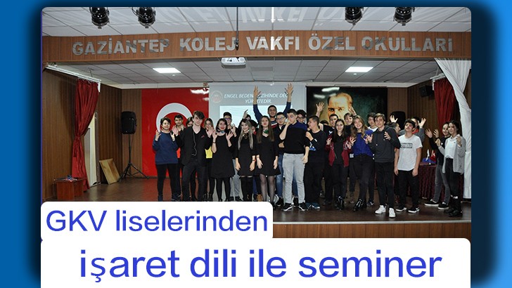 <p>Psikolojik Danışma ve Rehberlik Servisi öğretmenlerinden Fatma Zehra Doğan rehberliğinde gerçekleştirilen seminer büyük ilgi gördü. Gaziantep Kolej Vakfı Özel Okullarında düzenlenen ve işaret diliyle gerçekleştirilen seminer öğrencilerin büyük ilgisini gördü. Öğrencilerin de katılım gösterdiği söyleşi Gençlik ve Spor Bakanlığı’ndan onaylı işaret dili eğitimi belgesine sahip Psikolojik Danışma ve Rehberlik Servisi öğretmenlerinden Fatma Zehra Doğan tarafından gerçekleştirildi. Seminere katılan GKV Özel Fen Lisesi, GKV Özel Cemil Alevli Koleji ve GKV Özel Anadolu Lisesi gönüllü öğrencileri arkadaşlarıyla birlikte engelli bireylerin günlük hayatta karşılaştıkları zorlukları ve onlara daha fazla nasıl yardımcı olunması gerektiği konusunda bilgileri işaret dilini de kullanarak paylaştılar. Seminere izleyici olarak katılan öğrenciler arasından seçilen gönüllülerin gözlerini bağlayarak görme engelli, kulaklık takıp sesleri algılamalarını engelleyerek işitme engelli ve tekerlekli sandalye kullanarak yürüme engelli bireylerin yaşamlarını deneyimleyerek empati kurmaları sağlandı. Büyük ilgi gören seminerin sonunda öğrenciler hep birlikte “Sev Kardeşim” adlı şarkıyı işaret dili kullanılarak seslendirdi. </p>