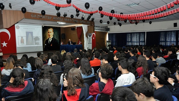 <p>Atatürk’ü Anma Haftası etkinliklerimiz kapsamında Akademisyen, Tarihçi, Yazar Prof. Dr. Orhan Doğan “Atatürk ve Gençlik” konulu konferansta Gaziantep Kolej Vakfı Özel Okulları öğrencileriyle buluştu. </p>