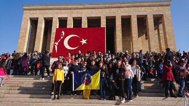 <p> Gaziantep Kolej Vakfı Özel Ortaokulu öğrencileri Atatürk Haftası etkinlikleri kapsamında Ankara’ya giderek Anıtkabir’de 10 Kasım anma törenine katıldı. Ankara’da yer alan tarihi ve turistik yerlerde de çeşitli incelemeler yapacak olan GKV kafilesi birinci meclis ve TBMM’de de incelemeler yaparak Ankara’da bulunan çeşitli müzeleri ziyaret edecek. GKV Özel Ortaokulu Müdür Yardımcısı Korkut Özkeleş, GKV’li öğretmenler Meliha Bolat, Derya Yener, Berkay Tahtacı ve Murat Kiremit’in rehberlik yaptığı 37 öğrenciden oluşan kafile sabahın erken saatlerinde Ankara’ya ulaşarak Anıtkabir’e gitti. Anıtkabir’de Atatürk’ün manevi huzurunda saygı duruşunda bulunan ve mozoleye çiçek bırakan öğrenciler Anıtkabir’de yakın tarihimizle ilgili sergilenen mekanları da ziyaret etti. Anıtkabir’de Atatürk’e ait eşyaları da inceleyen öğrenciler Anıtkabir’in bütün bölümlerini ziyaret ederek Kurtuluş Savaşından Atatürk’ün vefatına kadar dönemlerle ilgili sergilenen eşyaları görme şansı yakaladı. Anıtkabir’de ziyaretlerini tamamlayan öğrenciler Ankara’nın çeşitli yerlerinde kültürel gezi ve incelemeler yapmak üzere Anıtkabir’den ayrıldı. </p>