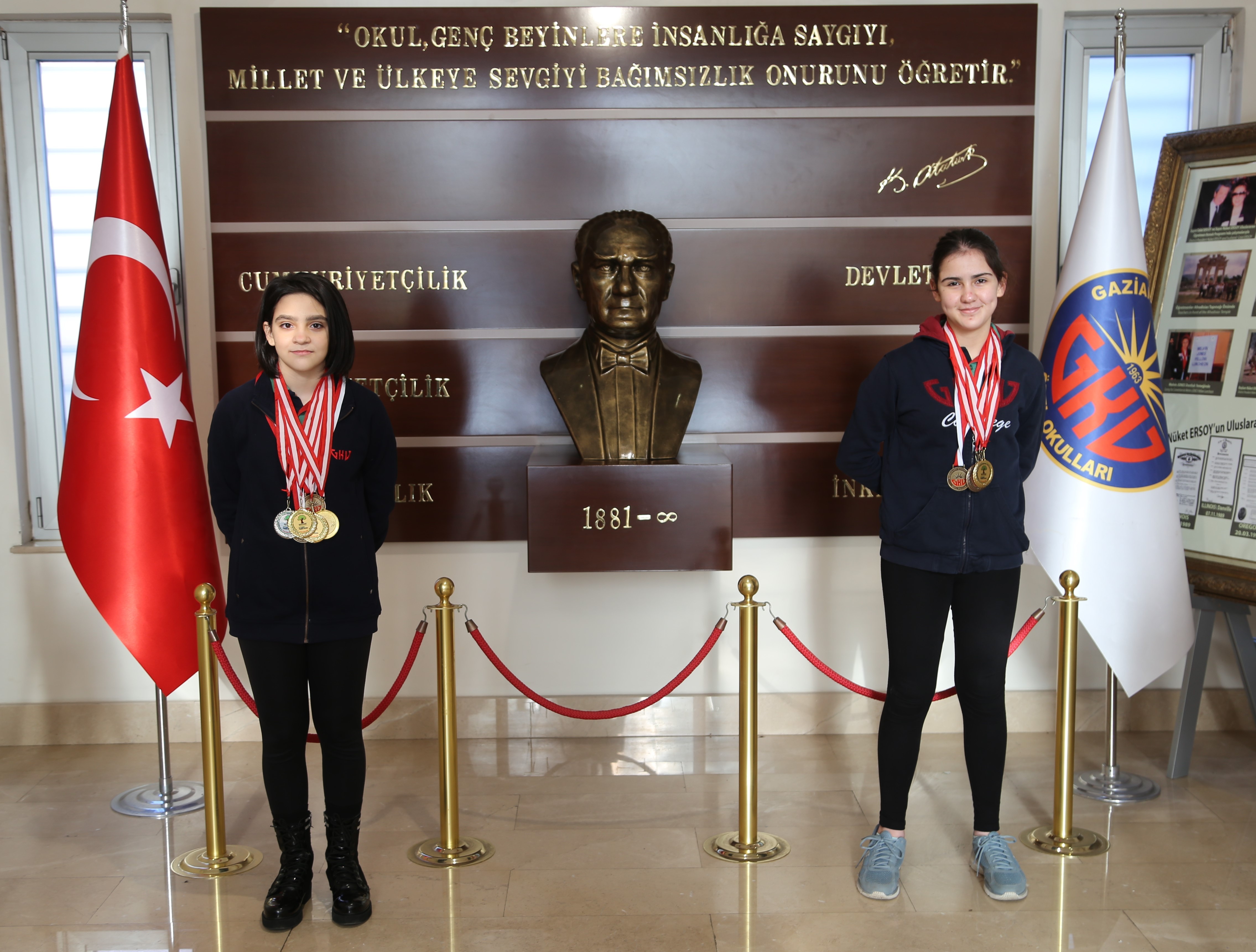 <p style="text-align: justify;">2019-2020 yılı Sualtı Sporları İl Faaliyet Programı kapsamında 12-13 Ocak 2020  tarihinde Gaziantep’te düzenlenen <strong>9. Geleneksel Paletli Yüzme Bireysel Kurtuluş Günü Yarışmalarında</strong> GKV Özel Ortaokulu öğrencileri Derin Özenel 3 altın, 1 gümüş, Ceren Batuş ise 1 altın, 3 bronz madalyanın sahibi oldu.</p> <p style="text-align: justify;">2019-2020 yılı Sualtı Sporları İl Faaliyet Programı kapsamında 12-13 Ocak 2020  tarihinde Gaziantep’te “9. Geleneksel Paletli Yüzme Bireysel Kurtuluş Günü Yarışmaları düzenlendi. Yarışmalara katılan Gaziantep Kolej Vakfı Özel Ortaokulu öğrencilerinden Derin Özenel 3 altın ve 1 gümüş madalya kazanırken GKV Özel Ortaokulu öğrencisi Ceren Batuş’ta 1 altın, 3 bronz madalyanın sahibi oldu.  GKV Özel Ortaokulu Müdürü Seçil Güldemet ve Akademik Müdür Yardımcısı Korkut Özkeleş öğrencileri tebrik ederek GKV Özel Okulları Şampiyonluk Madalyası’nı ve başarı sertifikalarını şampiyon sporculara takdim etti. Gaziantep'te düzenlenen yarışmada Derin Özenel 50mt su üstü kategorisinde altın madalya, 100 mt su üstü kategorisinde gümüş madalya, 100 mt çift paletli kategorisinde altın madalya ve 200 mt çift paletli kategorisinde altın madalya kazanırken Ceren Batuş’ta 100 mt çift paletli kategorisinde altın madalya, 100 mt su üstü, 200 mt su üstü ve 50mt su üstü kategorilerinde bronz madalya kazanarak isimlerini başarı listesine yazdırdılar. Şampiyonlara ödüllerini takdim eden GKV Özel Ortaokulu Müdürü Seçil Güldemet en kısa zamanda diğer spor dallarıyla ilgili yarışmalarında gerçekleşmesini dilediklerini ifade etti.</p>