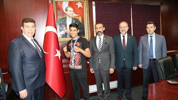 <p style="font-weight: 400;"><strong>Gaziantep Ticaret Odası (GTO), Kick Boks Şampiyonasında birinci olan Gaziantep Ticaret Odası Mesleki ve Teknik Anadolu Lisesi Öğrencisi Seyit Battal Ay’ı başarısından dolayı ödüllendirdi.</strong></p> <p style="font-weight: 400;">Gaziantep Ticaret Odası Yönetim Kurulu Başkanı Tuncay Yıldırım ve Meclis Başkanı Hilmi Teymur, Türkiye Kick Boks Federasyonu’nca 05-08 Nisan 2018 tarihleri arasında Antalya’da düzenlenen 3. Uluslararası Türkiye Açık Kick Boks Turnuvası (Turkish Open)’nda 54 kiloda birinci olan GTO Mesleki ve Teknik Anadolu Lisesi 11. Sınıf öğrencisi Seyit Battal Ay’ı Cumhuriyet altınıyla ödüllendirerek başarılarından dolayı kutladı.</p> <p style="font-weight: 400;"> </p> <p style="font-weight: 400;">Gaziantep Ticaret Odası (GTO) Yönetim Kurulu Başkanı Tuncay Yıldırım ve Meclis Başkanı Hilmi Teymur, Kick Boks şampiyonunun başarısından gurur duyduklarını ifade ederek, “Odamızın kurduğu GTO Mesleki ve Teknik Anadolu lisesinde okuyan 11. sınıf öğrencisi Seyit Battal Ay’ın Antalya’da yapılan turnuvada kilosunda birinci olması bizleri gururlandırdı. Bu başarısından ötürü kendisini tebrik ediyor ve ödüllendiriyoruz. Ayrıca 15-23 Eylül 2018 tarihleri arasında İtalya’nın Milano kentinde düzenlenecek olan Dünya Kick Boks şampiyonasında ülkemizi ve şehrimizi temsil edecek sporcumuza başarılar diliyoruz. Sporcumuzun İtalya’daki şampiyonada önemli dereceler elde edeceğine inanıyoruz” dediler.</p> <p style="font-weight: 400;"> </p> <p style="font-weight: 400;">GTO Mesleki ve Teknik Anadolu Lisesi öğrencisi Kick Boks şampiyonu Seyit Battal Ay’ın GTO tarafından ödüllendirildiği ziyarette, GTO Mesleki ve Teknik Anadolu Lisesi Müdürü Ergün Özkol, GTO Yönetim Kurulu Başkan Yardımcıları Uğur Acıoğlu ve Mehmet Tatar’ın yanı sıra Yönetim Kurul üyesi Mehmet Kavsara da hazır bulundu.</p> <p style="font-weight: 400;"> </p>
