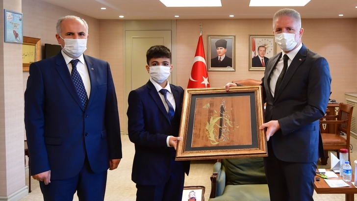 <p style="text-align: justify;">Vali Davut Gül, kendisini ziyaret eden öğrencileri tebrik ederek, emeği geçen hocaları başta olmak üzere ailelerine, öğrencilere ve destek olan herkese teşekkür etti.</p>
