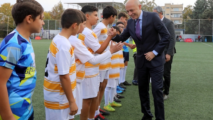 <p style="font-weight: 400;">Büyükşehir Belediyesi Hasan Doğan Futbol Sahası ve Hasan Celal Güzel Futbol Sahası’nda eğitim gören 12 yaş grubu çocukların gösteri maçına katılan hakem Cüneyt Çakır başlama düdüğünü çaldı, başlama vuruşunu ise Büyükşehir Belediyesi Başkan Vekili Erdem Güzelbey yaptı.</p>