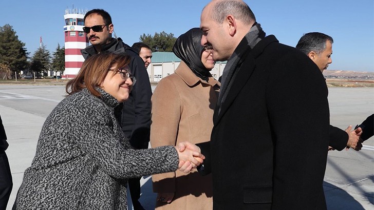 <p>İçişleri Bakanı Süleyman Soylu, Osmaniye'deki programı için sabah uçakla Gaziantep'e geldi. Gaziantep Havalimanı'nda Gaziantep Büyükşehir Belediye Başkanı Fatma Şahin, Gaziantep Milletvekilleri Ahmet Uzer ve Mehmet Erdoğan'ın da aralarında bulunduğu kent protokolü tarafından karşılanan Soylu'ya çocuklar tarafından çiçek verildi. Bakan Soylu, havaalanından inceleme yapmak üzere Oğuzeli ilçesindeki Göç ve Geri Gönderme Merkezine hareket etti. Soylu'nun buradaki incelemelerinin ardından Osmaniye'ye geçmesi bekleniyor.</p>
