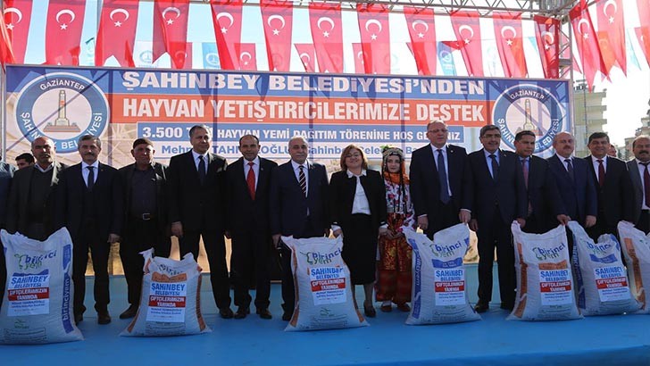 <p style="font-weight: 400;">Şahinbey Belediye Başkanı Mehmet Tahmazoğlu, çiftçilere önümüzdeki günlerde zeytin fidanı dağıtımı da yapacakları müjdesini vererek, “Hükümetimiz Sayın Cumhurbaşkanımızın önderliğinde her alanda olduğu gibi çiftçilerimize de çok büyük destekler veriyor. Hükümetimizin çıkardığı kanunla belediyelerimizin de çiftçilerimize destek verme yönünde yolu açılmış oldu. Bu konuda Büyükşehir Belediye Başkanımız Sayın Fatma Şahin birkaç yıldan bu yana çiftçilerimize destek oluyorlar. Biz de Şahinbey Belediyesi olarak Şahinbey İlçesi’ndeki çiftçilerimize destek vermek adına 2.000 ton buğday tohumu ve 2.000 ton gübre dağıtımı gerçekleştirdik. Şimdi de hayvan yetiştiricilerimize 3.500 ton hayvan yemi dağıtımı gerçekleştiriyoruz. Bunun 2.900 tonunu büyükbaş hayvanlar için 600 tonunu da küçükbaş hayvan yetiştiricilerimize dağıtacağız. Buradaki amacımız küçük işletmelere sahip olan üreticilerimizi desteklemek. Hayvan üreticilerimize yapacağımız dağıtım kişi başına en fazla 2.000 kg ve en az 750 kg olmak üzere sınırladık, desteğimiz sadece bunlarla kalmayacak. Bu bölge zeytine çok uygun. Önümüzdeki ayın sonunda 500.000 adet zeytin fidanı dağıtımı yapacağız. Fidan dağıtımımızın yüzde 50’sini biz yüzde 50’sini çiftçimiz karşılayacak. Ancak vatandaşlarımızın da her evin bahçesine bir zeytin fidanı dikmesini istiyoruz. Bu nedenle belirli sayıda bütün vatandaşlarımıza ücretsiz zeytin fidanı dağıtacağız” dedi.</p>