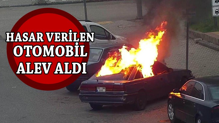 Hasar verilen otomobilden alevler yükseldi