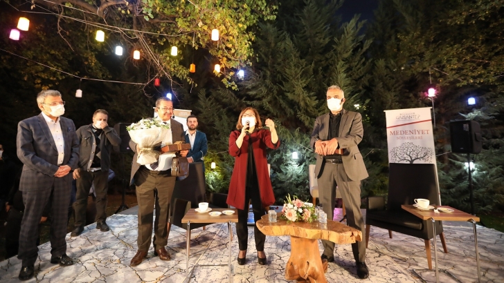 <p style="font-weight: 400;">Büyükşehir Belediyesi, Değerler Eğitimi ve Gönüllü Kuruluşlar Daire Başkanlığınca Medeniyet Söyleşileri kapsamında organize edilen “Medeniyetimizin Kalbindeki Mümtaz Şahsiyetler” adlı programda yeni tip Koronavirüs (Kovid-19) nedeniyle binlerce başvuru arasında katılımcılar kura ile belirlendi. Maske ve HES kodu ile alana giren Gaziantepliler, açık havada, ülkenin öz medeniyet değerlerine gerçekleştirdikleri yolculuğun dokuzuncusuna tanıklık etti. Bekir Develi’nin moderatörlüğünde Hayati İnanç’ın sunumlarıyla sanal mecralarda da canlı yayınlanan programı, Büyükşehir Belediye Başkanı Fatma Şahin de ilgiyle izledi.</p>