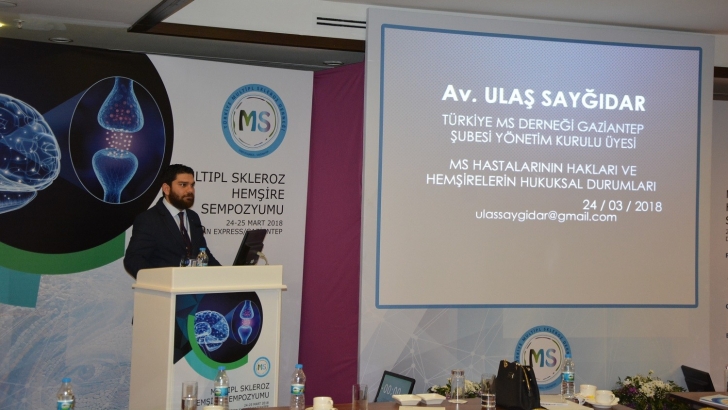 <p>MS hastalığının 2013 yılındaki değişiklikle malulen emeklilik yönetmenliğine girdiğine dikkat çeken Gaziantep Barosu Avukatlarından Ulaş Sayğıdar, "Hastaların, hasta hakları, sosyal güvenlik mevzuatı ve iş hukukuyla ilgili konularda sağlık çalışanlarından beklentileri ve talepleri olabilmektedir. Sağlık çalışanlarının bu tür sorulara hazırlıklı olmaları gerekmektedir" dedi. Multipl Skleroz (MS) hastalarına özgü mevzuat ve uygulamalarla ilgili hemşirelere hukuki bilgiler veren Av. Sayğıdar, ayrıca hemşirelerin hukuki, cezai ve disiplin sorumluluğuyla ilgili karşılaşabilecekleri durumlarda yapılması gerekenler konusunda açıklamalarda bulundu.</p>