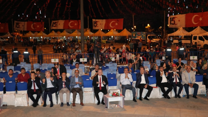 <p>15 Temmuz Demokrasi ve Milli Birlik Günü, Gaziantep 15 Temmuz Demokrasi meydanında coşkuyla kutlandı. Gece geç saatlere kadar devam eden kutlamalarda miting alanını terk etmeyen Gaziantep Valisi Davut Gül vatandaşlardan büyük takdir aldı. Bir çok protokol üyesinin belli bir saatten sonra miting alanından ayrılırken, Gaziantep Valisi Davut Gül, Şehitkamil Belediye Başkanı Rıdvan Fadıloğlu, İl Emniyet Müdürü Faruk Karaduman, Oğuzeli Belediye Başkanı Sait Kılıç, MÜSİAD Gaziantep Şube Başkanı Mehmet Çelenk, İl Müftüsü Ahmet Çelik ve Gaziantep Büyükşehir Belediye Başkanı Fatma Şahin’in eşi İzzet Şahin gecenin geç saatine kadar alanı terk etmedi. </p>