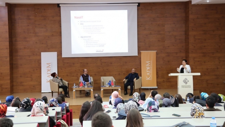 <p>HKÜ ev sahipliğinde gerçekleşen akran zorbalığı konulu panel; eğitmenler, psikologlar ve öğrenciler tarafından yoğun ilgi ile karşılandı. HKÜ Rektör V. Prof. Dr. Edibe Sözen’in moderatörlüğünde gerçekleşen etkinlikte; HKÜ Öğretim Üyeleri Prof. Dr. Mücahit Öztürk ‘‘Zorba Çocuklar’’, Prof. Dr. O. Tolga Arıcak ‘‘Siber Zorbalık’’, Doç. Dr. Ş. Senem Başgül ise ‘‘Zorbalıktan Korunma’’ başlıklı konularını katılımcılara sundu. Etkinliğin Açılış konuşmasını KADEM Başkanı Sabiha Doğan, Gaziantep İl Milli Eğitim Müdür Yardımcısı Mehmet Ali Tiryakioğlu, HKÜ Rektör V. Prof. Dr. Edibe Sözen yaptı. </p>