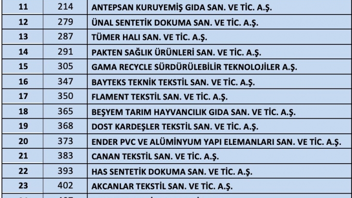 <p style="font-weight: 400;">İstanbul Sanayi Odası (İSO) tarafından gerçekleştirilen Türkiye’nin İkinci 500 Büyük Sanayi Kuruluşu araştırmasının 2021 yılı sonuçlarına göre listeye Gaziantep’ten 38 firma adını yazdırdı.</p>
