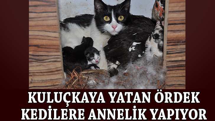 <p>Gaziantep İslahiye İlçesi Beyler Mahallesi'nde hobi bahçesinde ördek besleyen Fatma Mustafa Güngör çiftine ait kuluçkadaki bir ördek, yeni doğmuş kedi yavrularına kendi anneleri gibi bakıyor. Kuluçkaya yatmış olan ördeğin yanında doğum yapmış anne kedinin zaman zaman kulübeden çıkıp gezdiğinde ise yavru kedilere ördek sahip çıkıyor. Yavru kediler kimi zaman anneleri olmasın rağmen ördeğin yanına giderek, sevgi gösterisinde bulunuyor. Yavru kedi ve ördeğin dostluklarını görünce çok şaşırdıklarını belirten Fatma Güngör, "Bizler her gün burada bu havyanlarla vakit geçiriyoruz. İlk gördüğümüzde bizde şaşırdık. Normalde ördekler hassas olurlar kuluçka döneminde başka canlı istemezler ama demek ki anne duygusu ağır bastığı için aynı ortamı paylaştılar. Biz çok duygulandık. Ördek yavru kedileri korurken, kedi kuluçkadaki ördeğin yumurtalarına dahi dokunmuyor. Bu aslında biz insanların ders çıkartması gereken görüntüler ama anlayana" diye konuştu. </p>
