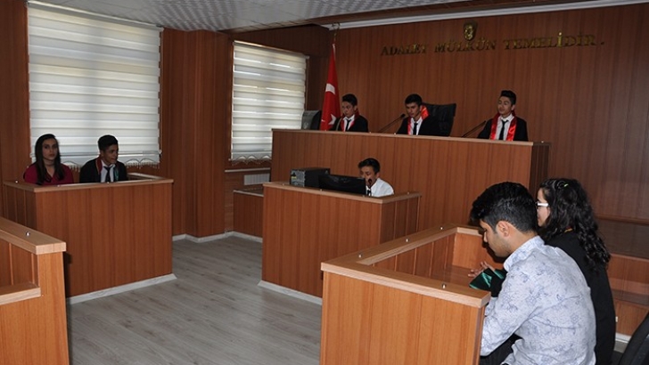 <p><br />MEB Mesleki ve Teknik Eğitim Genel Müdürlüğü desteğiyle yapımı tamamlanan duruşma salonu ve adil yazma sınıflarının açılışı yapıldı. İslahiye Fevzipaşa Programlı Anadolu Lisesi Adalet bölümü öğrencileri mahkeme salonu şeklinde yapılan sınıf sayesinde alan derslerini uygulamalı alacak. Cumhuriyet Başsavcılığı kalem hizmetleri, duruşma ve karar işlemleri, ceza ve infaz katip hizmetlerinin uygulamalı olarak verileceği sınıftan bu dönem 15 öğrencinin faydalanacağı belirtildi. <br />Açılışta konuşma yapan İslahiye Cumhuriyet Başsavcısı Melih Aladağ, "Bu salonun hayırlı uğurlu olması dilerim. Burada eğitim gören öğrencilerimiz geleceğin hakim ve savcıları olsun. Eğitim gören arkadaşlarımızın önleri açıktır, geleceğin hakimleri savcıları olabilirsiniz. Çünkü siz temelinden başlıyorsunuz, üniversitesinde okursunuz. Ben gençlere hep hakim savcı olmalı öneriyorum. Sizler bu konuda şanslısınız, adalet lisesinde okuyorsunuz. Bizler düz lise mezunlarıyız. Açılışını yaptığımız bu salonun eğitim ve öğretiminize katkı sağlayacaktır" dedi. <br />Konuklar ise, hazırlanan duruşma salonu çok beğendiklerini belirtti. <br /><br />Boşanma davasında boşanmak isteyen çiftleri barıştırdılar <br />Öğrencilerin teoride öğrendiklerini pratiğe dökmek için okul yönetimi tarafından gerçek mahkeme salonunu aratmayacak şekilde hazırlanan sınıfta, öğrenciler konu gereği şiddetli geçimsizlik yaşayan bir çiftin duruşmasını gerçekleştirdi. Cübbe giyerek hakim, savcı ve avukat olan öğrenciler, mahkeme salonunda yerlerini alarak celseyi başlattı. Açılışa gelen İslahiye Cumhuriyet Başsavcısı ve İslahiye Adliyesinde görevli hakim ve savcı ile diğer konuklar, izleyici koltuğuna oturdu. Boşanmak isteyen çiftin çocuklarının "bizi anasız babasız bırakmayın" çağrısı üzerine mahkeme çiftin boşanmamasına karar vererek celseyi kapattı. <br />Duruşma sonrası konuk koltuğuna oturan hakim ve savcılar öğrencilerin artılarını ve eksiklerini değerlendirdi. <br />Fevzipaşa Çok Programlı Anadolu Lisesi Adalet alanı duruşma salonu açılışına İslahiye Cumhuriyet Başsavcısı Melih Aladağ, İslahiye Milli Eğitim Müdürü Mustafa Çetin Şube Müdürleri Mehmet Akdoğan, Mustafa Özdemir, İslahiye AK Parti İlçe Başkanı İbrahim Erdoğan, İslahiye Adliyesinde görevli hakim, savcılar, okul müdürleri ve öğrenciler katıldı. </p>
